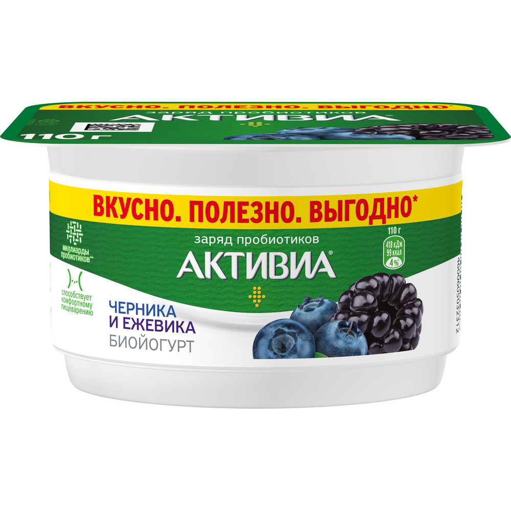 Мы создали для вас новый биойогурт с ароматной черникой и лесной ежевикой по специальной выгодной цене. В меру сладкий йогурт прекрасно подходит как для завтрака, так и для легкого перекуса в течение дня.Молочные продукты Активиа — результат двадцатилетней работы исследователей и экспертов. В продукции содержатся бифидобактерии ActiRegularis(R): их положительное влияние на микрофлору кишечника клиническ�� доказано! Активиа – это единственный продукт на российском рынке, рекомендованный Российской Гастроэнтерологической Ассоциацией.