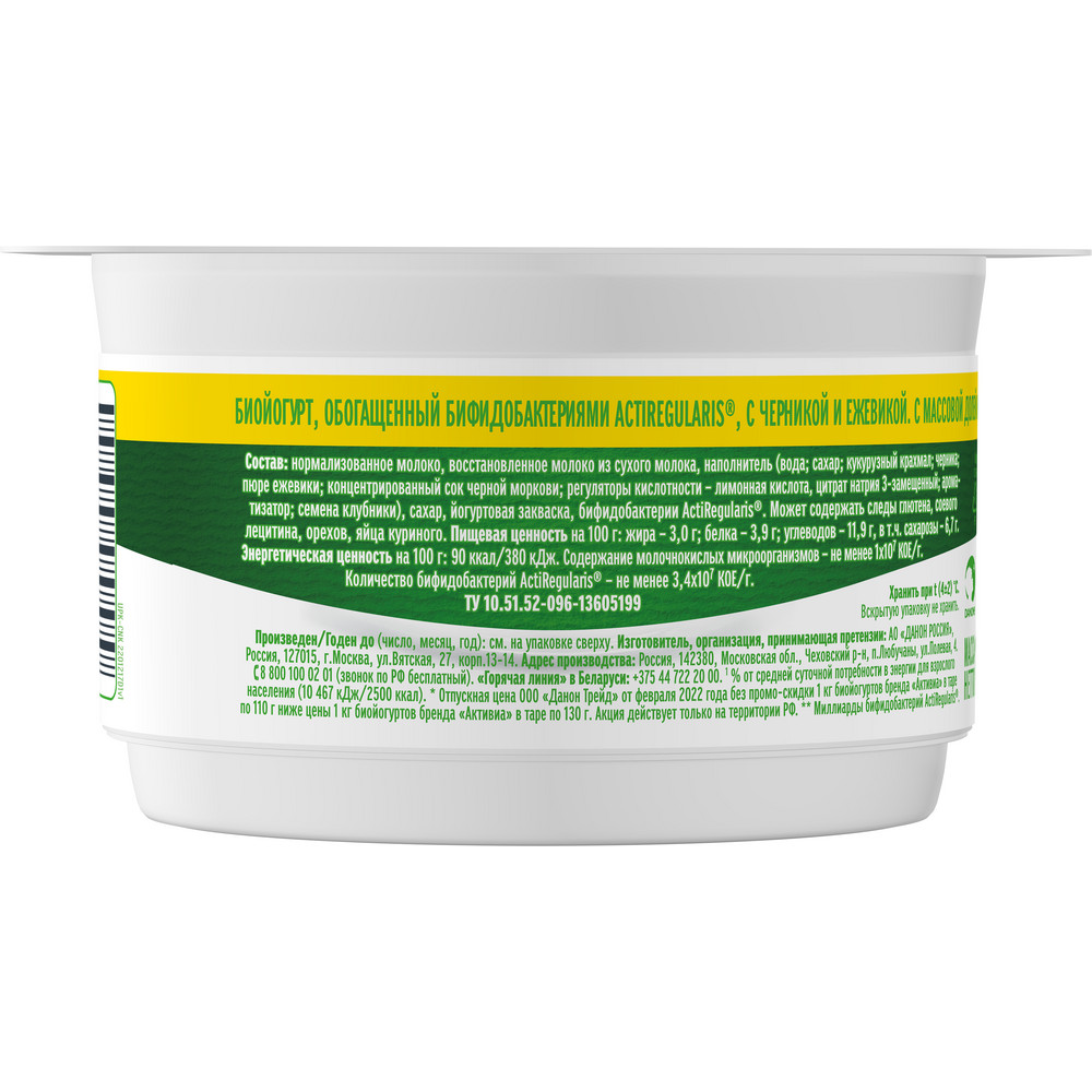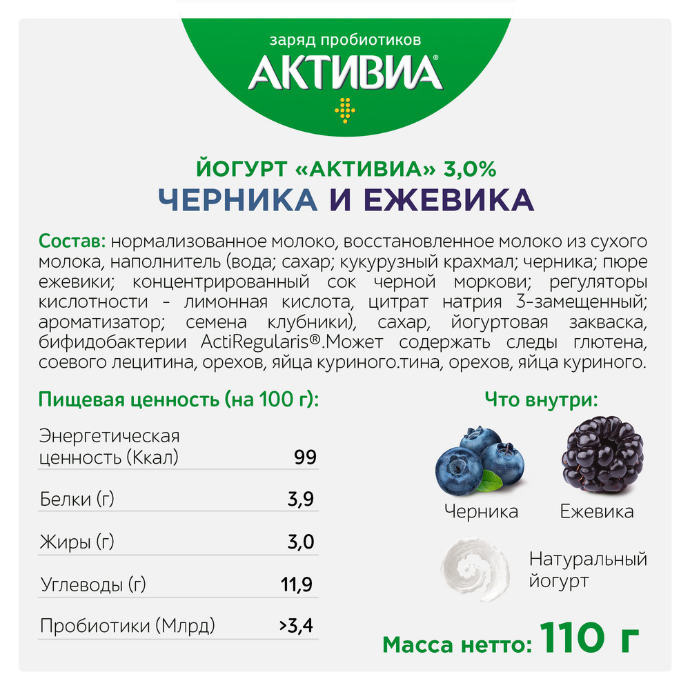Биойогурт Активиа обогащенный Черника ежевика 3%, 110г