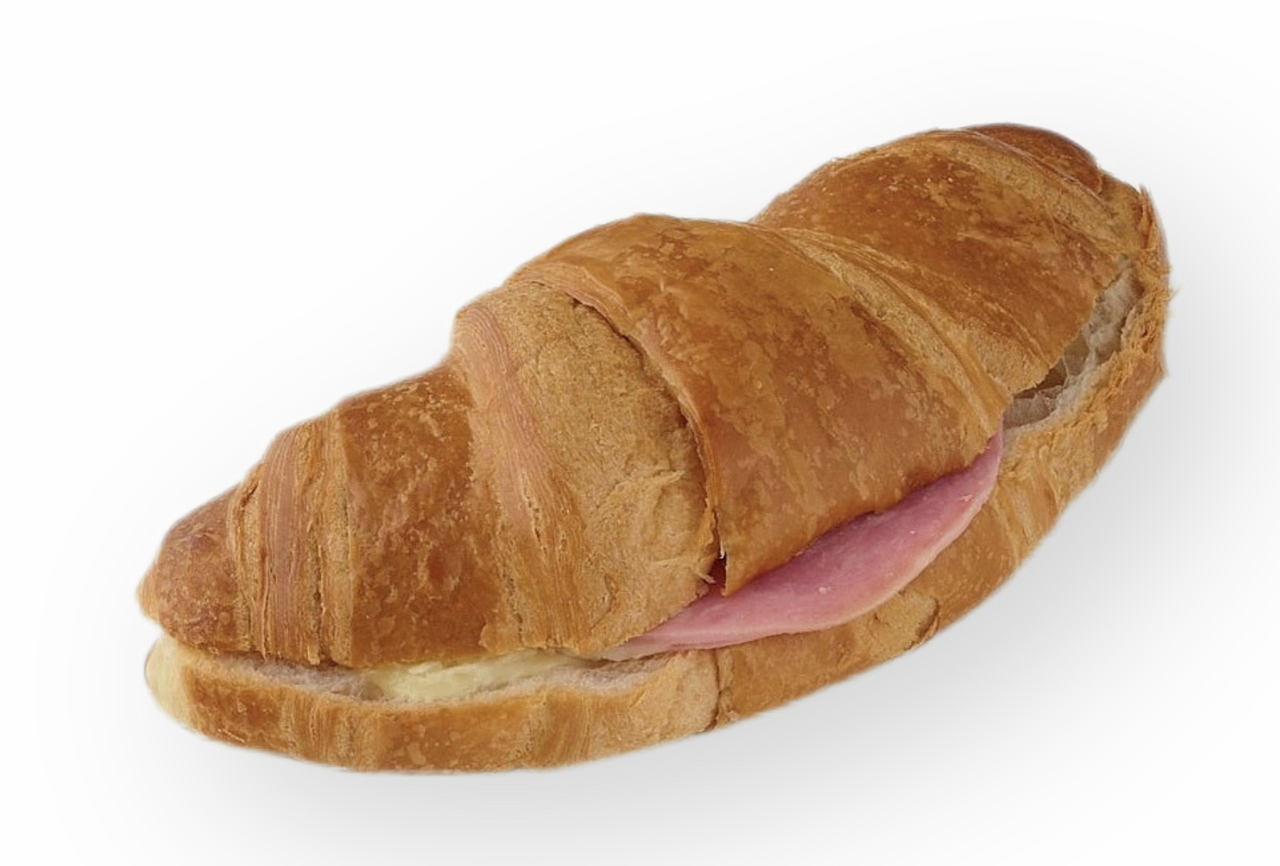 Круассан мука пшеничная хлебопекарная высшего сорта, вода питьевая, маргарин растительные жиры, вода, молочный жир 8%, растительные масла, соль, антиокислитель: лимонная кислота; ароматизатор, краситель: бета-каротин, сахар, дрожжи хлебопекарные прессованные, маргарин растительные масла, вода, эмульгатор: лецитин соевый, соль, регулятор кислотности лимонная кислота, консервант сорбат калия, натуральные красители: аннато, куркумин, улучшитель хлебопекарный пшеничная мука, глюкоза, пшеничная клейковина, аскорбиновая кислота; окорок свиной варено-копченый свинина, вода питьевая, посолочно-нитритная смесь соль, фиксатор окраски нитрит натрия, стабилизаторы пирофосфат калия, сахар, пряности перец черный, перец душистый молотый, усилитель вкуса и аромата глутамат натрия 1-замещенный, антиокислитель аскорбиновая кислота, L-, регуляторы кислотности ацетат натрия; сыр плавленый сыр, масло сливочное, вода, сухое обезжиренное молоко, загустители – Е1422, Е407, ксантановая камедь, камедь целлюлозы, Е1450, эмульгатор – Е331, соль пищевая, регулятор кислотности – лимонная кислота, консервант – сорбат калия, ароматизатор.