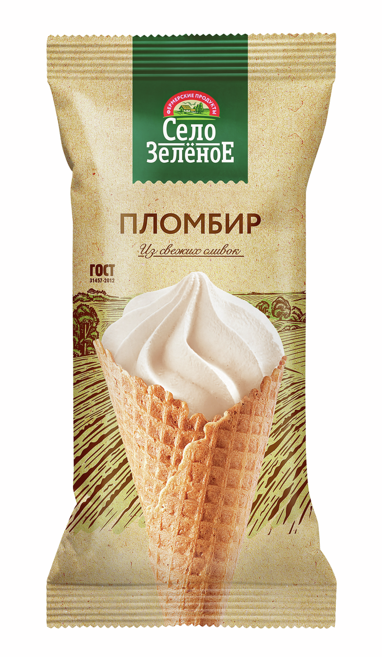 Мороженое пломбир Село Зеленое рожок Ванильное в вафельном рожке ГОСТ 15%, 110г