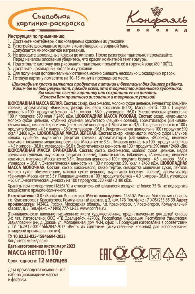 Раскраска Конфаэль шоколадная, 110г