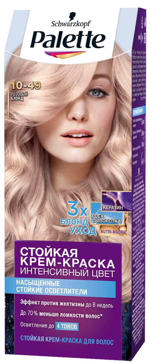 Крем-краска для волос Палетт Интенсивный цвет 10-49 Розовый блонд, 110мл