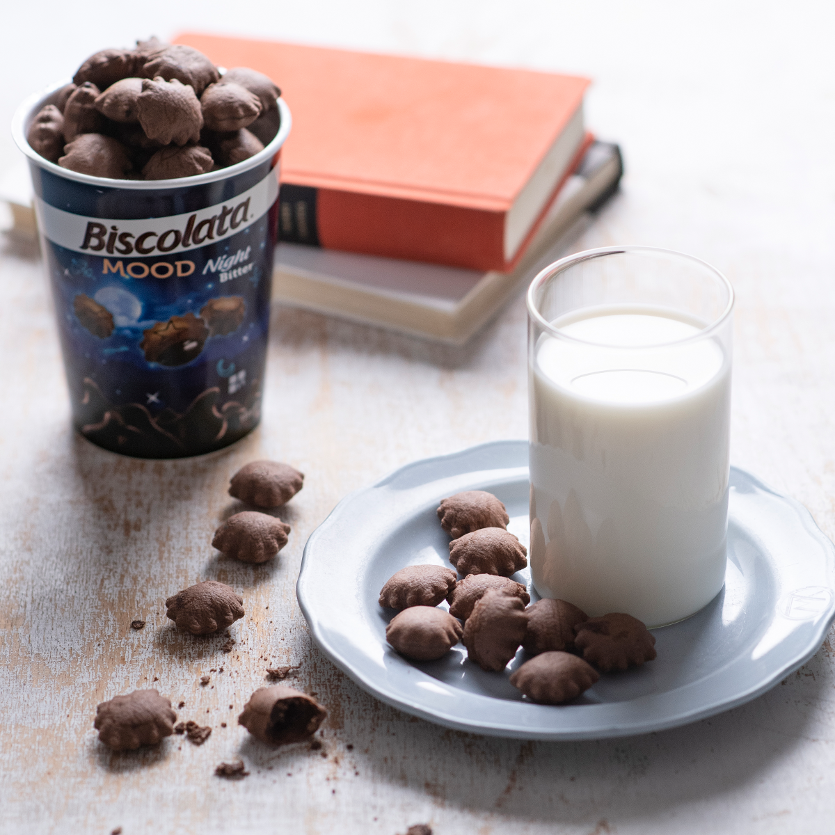 Печенье Biscolata Mood Night с какао и начинкой из черного шоколада, 115г