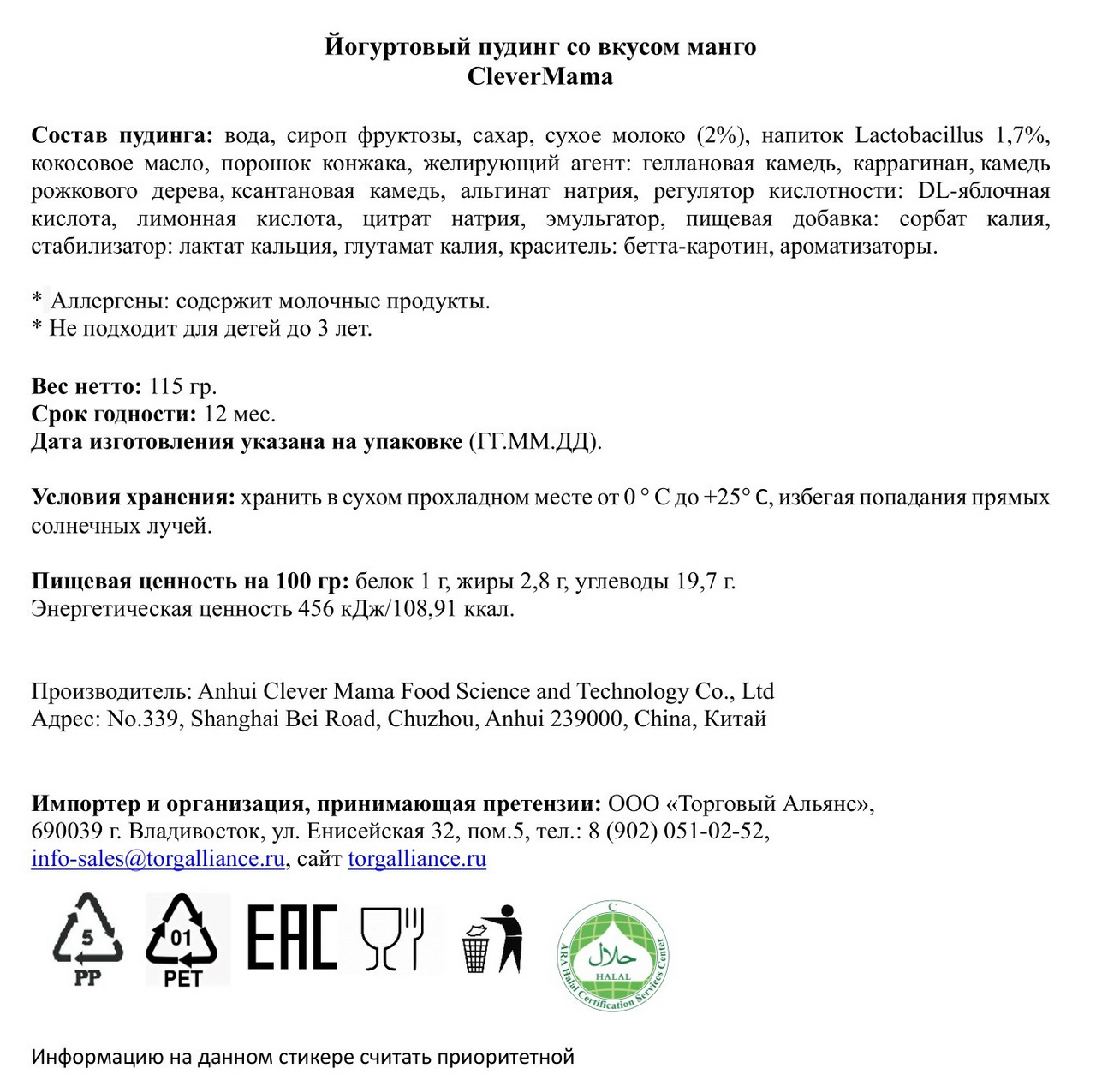 Оригинальный десерт пудинг Clever Mama йогуртовый с манго. Отличный питательный перекус для детей и взрослых. Удобная мягкая упаковка, в которой находятся порционные пудинги в капсулах. Каждая капсула сохраняет свежесть продукта и позволяет брать его с собой. Необычный вкус и полезный состав понравятся тем, кто любит интересные гастрономические сочетания.