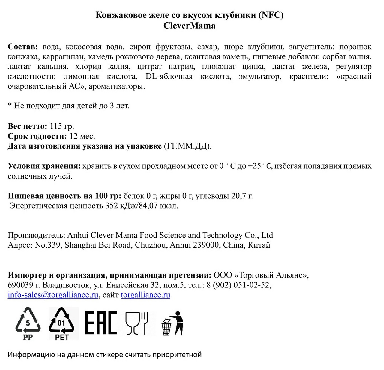 Фруктовое желе Clever Mama с кусочками клубники из сока NFC. Откройте для себя изысканность восточных десертов. Это не просто желе, а утонченная китайская сладость. В его основе - сок прямого отжима (NFC), который передаёт чистый и свежий вкус клубники. Внутри каждой пачки вы найдете порционные капсулы, которые удобны в использовании. Это фруктовое желе с нежной тающей текстурой станет любимым десертом для ценителей настоящего вкуса и поклонников азиатской кулинарной эстетики. Отличный перекус на учебе, работе и просто на отдыхе с друзьями.