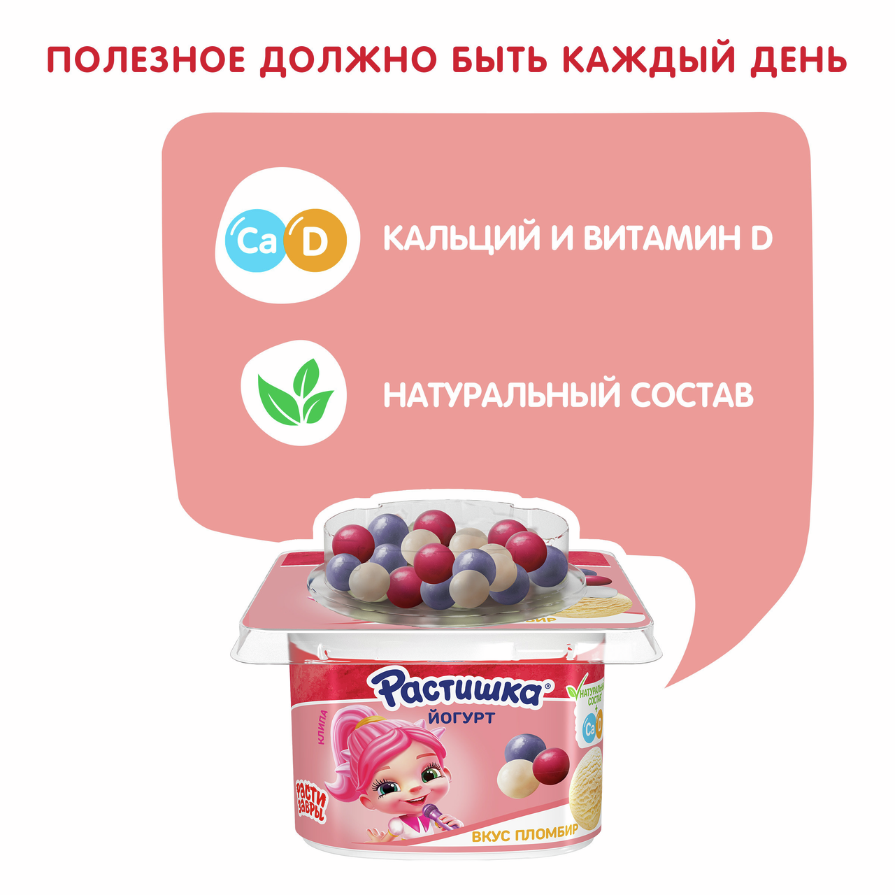 Йогурт детский Растишка Пломбир и ягодное драже 3% с 18 месяцев, 116г