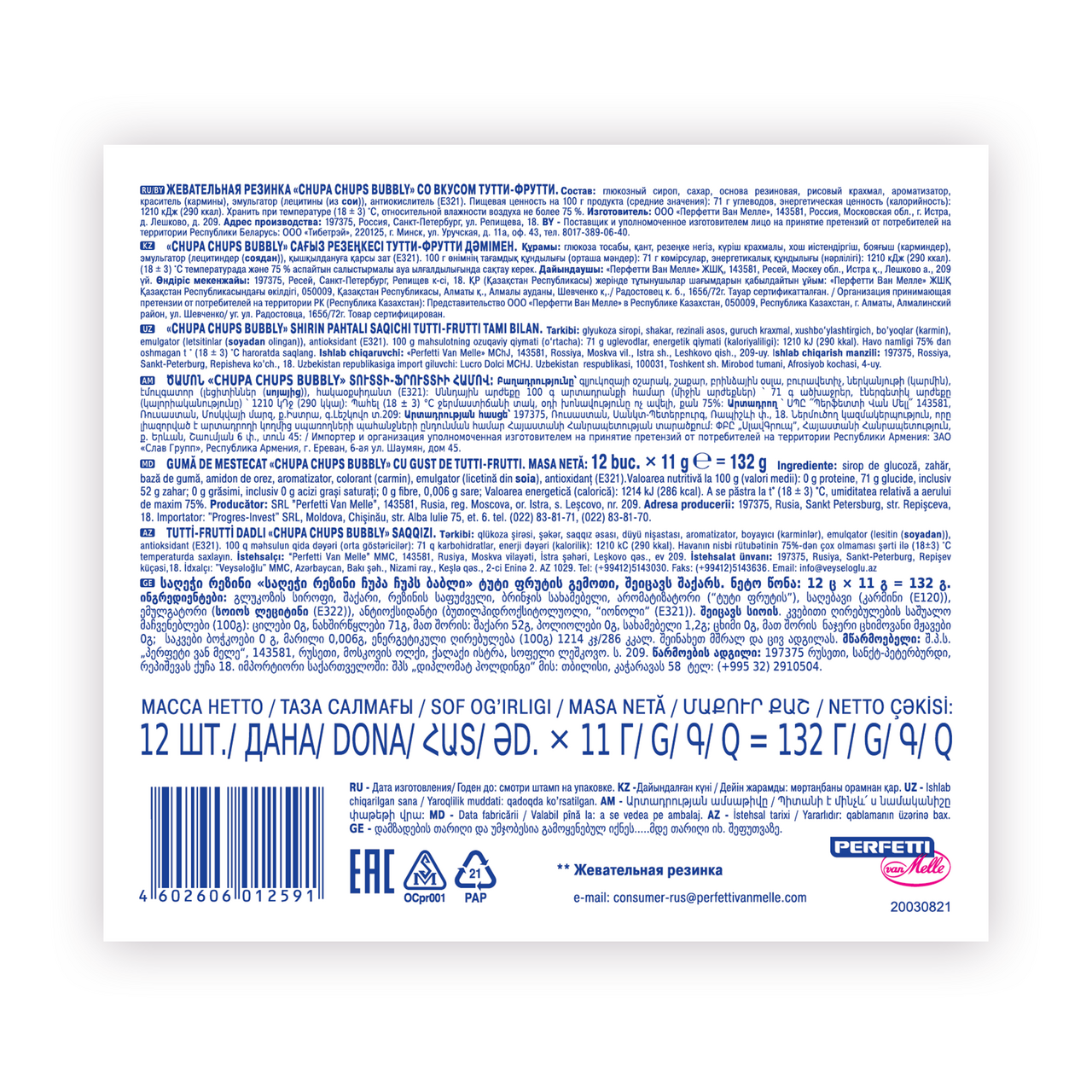 Жевательная резинка Chupa Chups Сладкая вата тутти-фрутти, 11г
