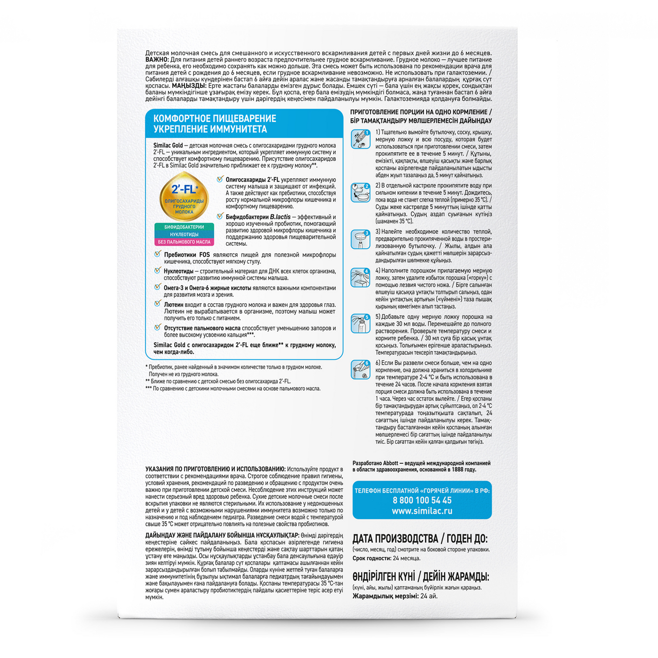 Similac Gold – детская молочная смесь для полноценного роста и развития, содержит 2'-FL олигосахариды грудного молока, которые способствуют укреплению иммунитета и защите от инфекций. В составе пре- и пробиотики для здоровья микрофлоры, Омега-3 и Омега-6 для развития мозга и лютеин для здоровья глаз, а также все необходимые витамины и минералы.
