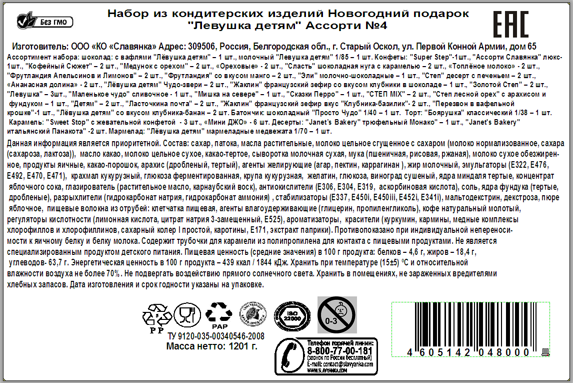 Подарочный набор Лёвушка детям ассорти №4, 1.201кг