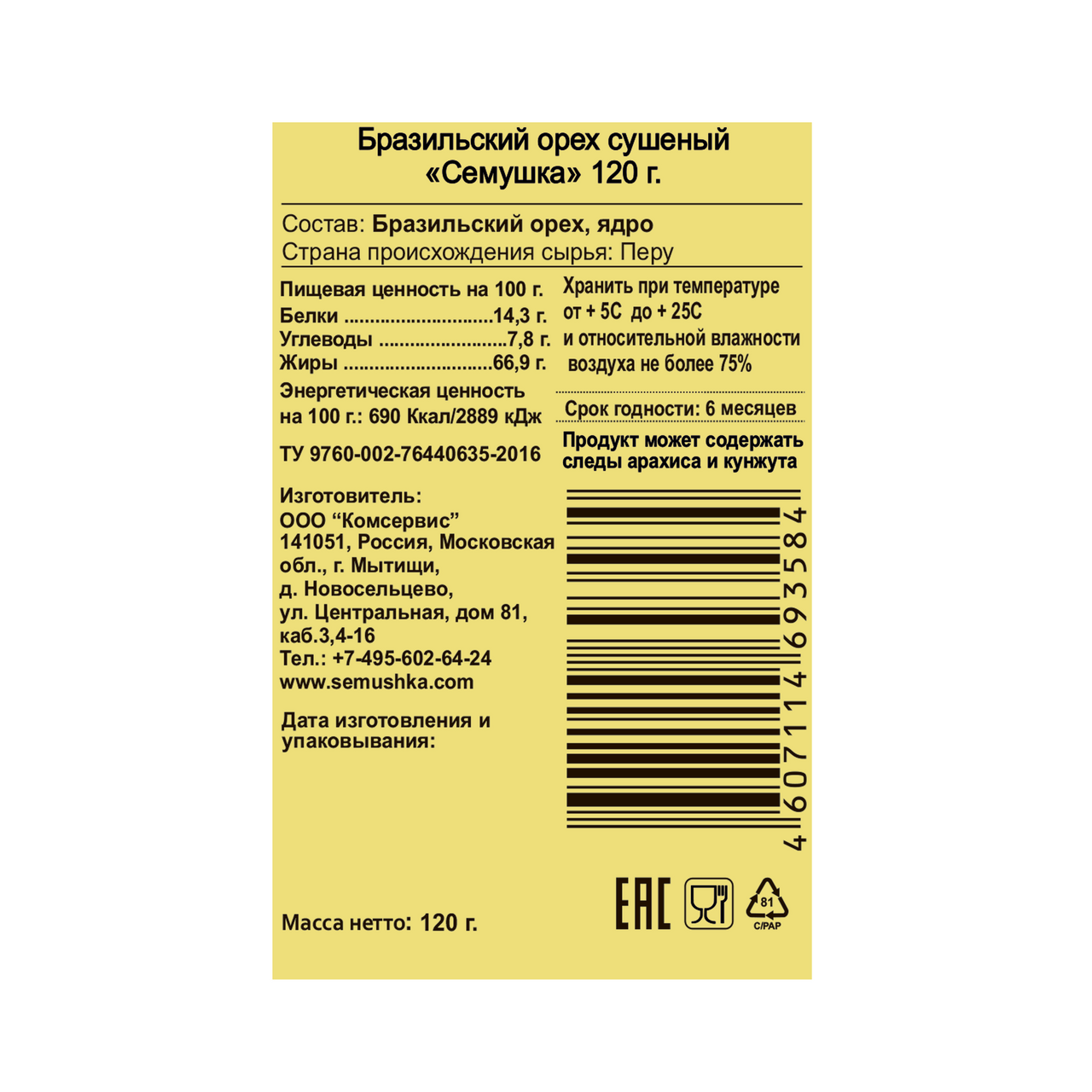 Орех Семушка бразильский, 120г