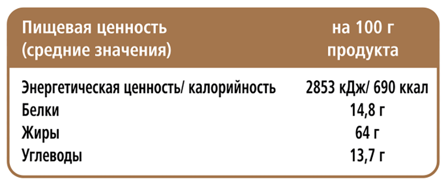 - Жиры, г 65.2