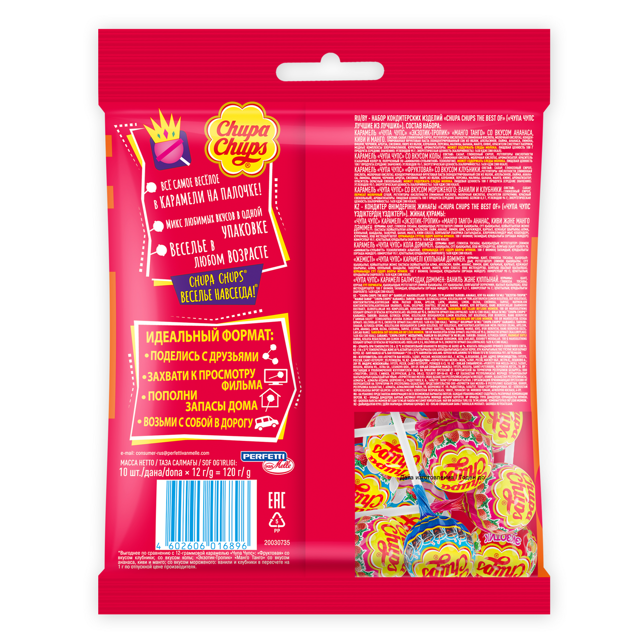 Микс вкуснейших леденцов на палочке, который непременно порадует любого сладкоежку. В составе 4 вида карамели: со вкусом колы, Фруктовая со вкусом клубники, со вкусом мороженого (ванили и клубники), со вкусом экзотических фруктов (ананаса, киви и манго). 10 любимых сладостей в ярком герметичном пакетике – это отличный подарок и прекрасное дополнение к любому событию. Каждое угощение помещено в индивидуальную упаковку, благодаря чему их удобно брать с собой в дорогу, в гости или на прогулку.
