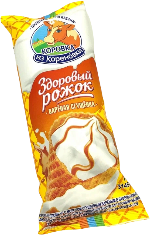 Мороженое пломбир Коровка из Кореновки с вареным сгущенным молоком в вафельном рожке 15%, 120г