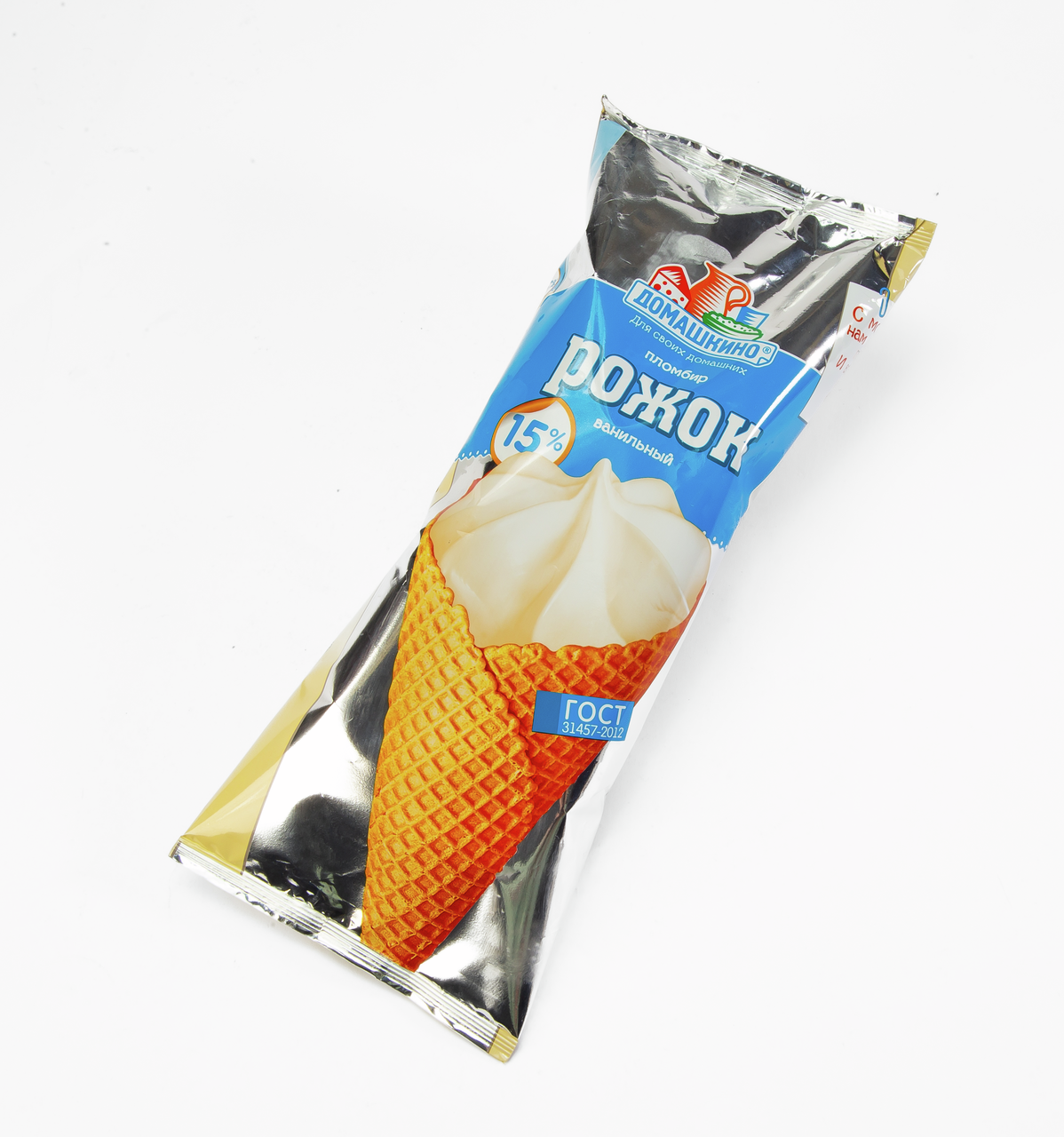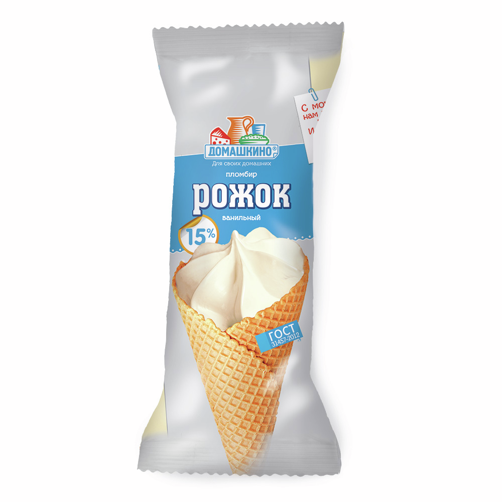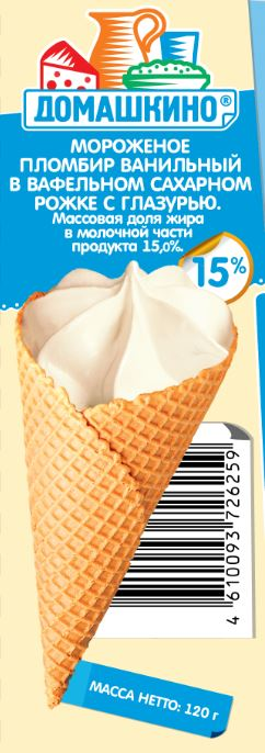 Мороженое пломбир Домашкино Ванильное в вафельном рожке 15%, 120г