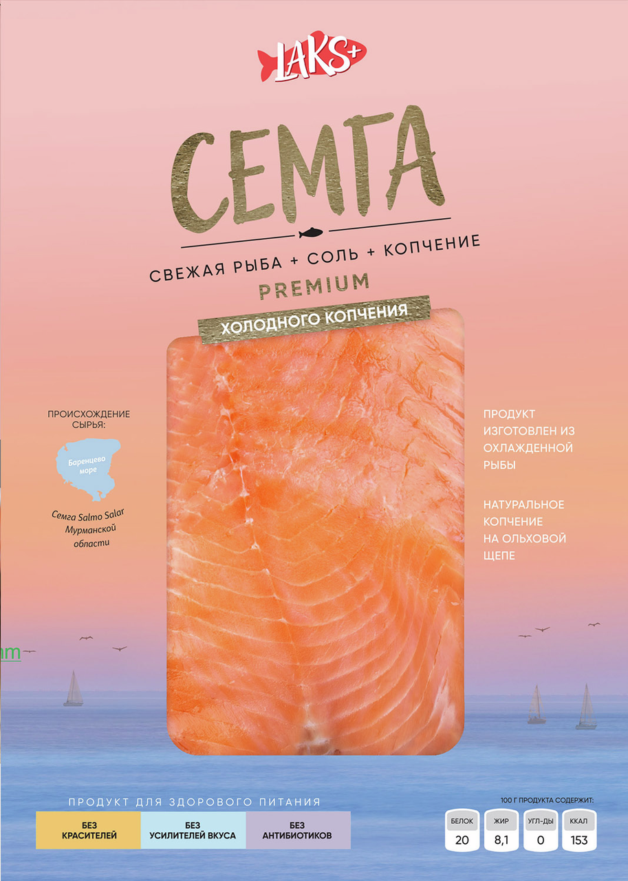 Семга Laks+ слайсы холодного копчения, 120г