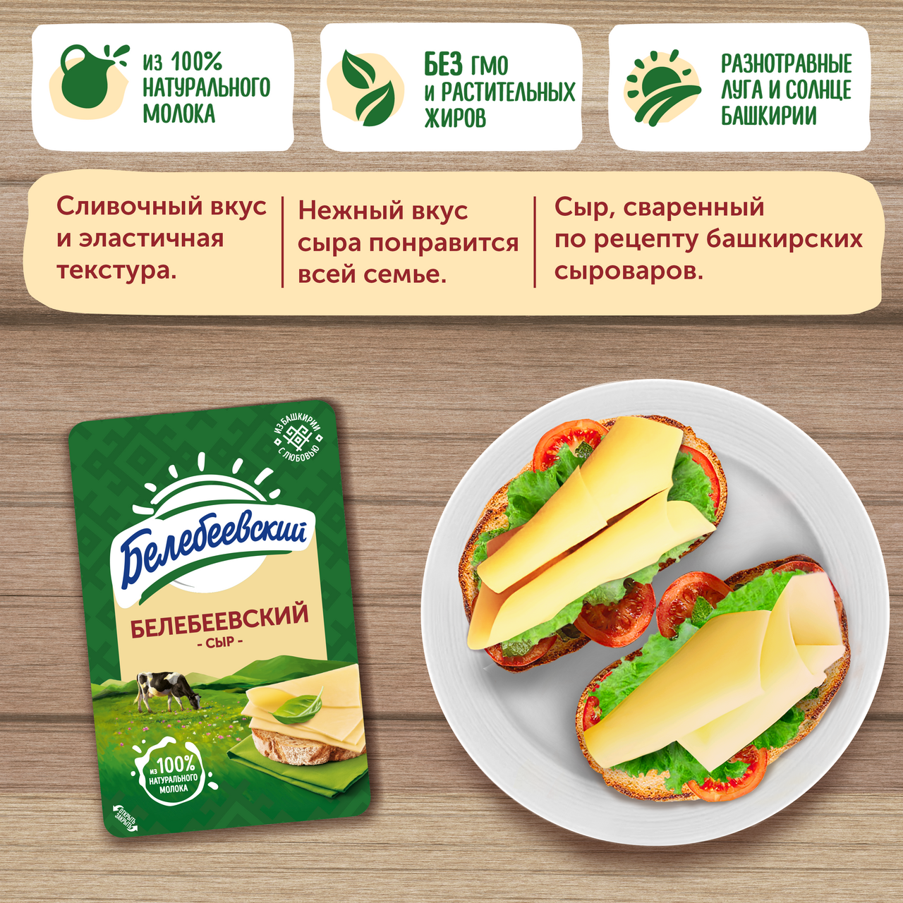 Классический сыр, сваренный по оригинальному рецепту башкирских сыроваров из 100% натурального молока. Обладает эластичной текстурой и приятным сливочным вкусом. Служит ценным источником кальция и белка, необходимых человеку в любом возрасте. Сыр прекрасно подходит для приготовления канапе, бутербродов, сэндвичей, брускетт и различных горячих блюд.