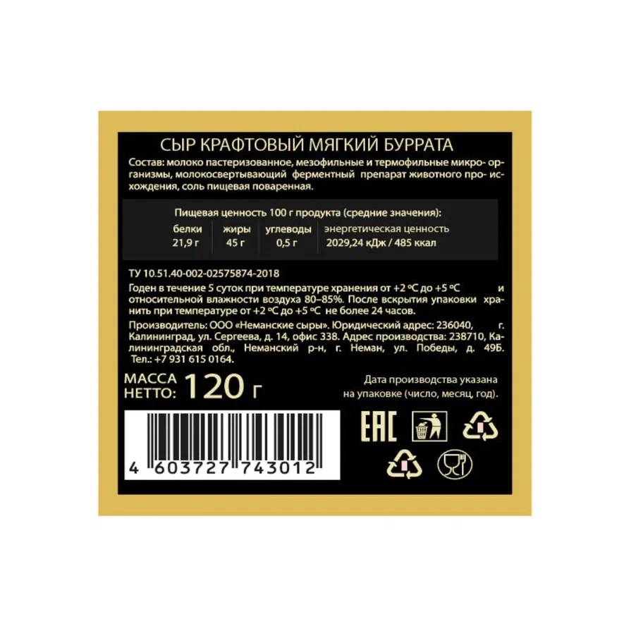 Сыр Тильзит Рагнит Буррата 48%, 120г