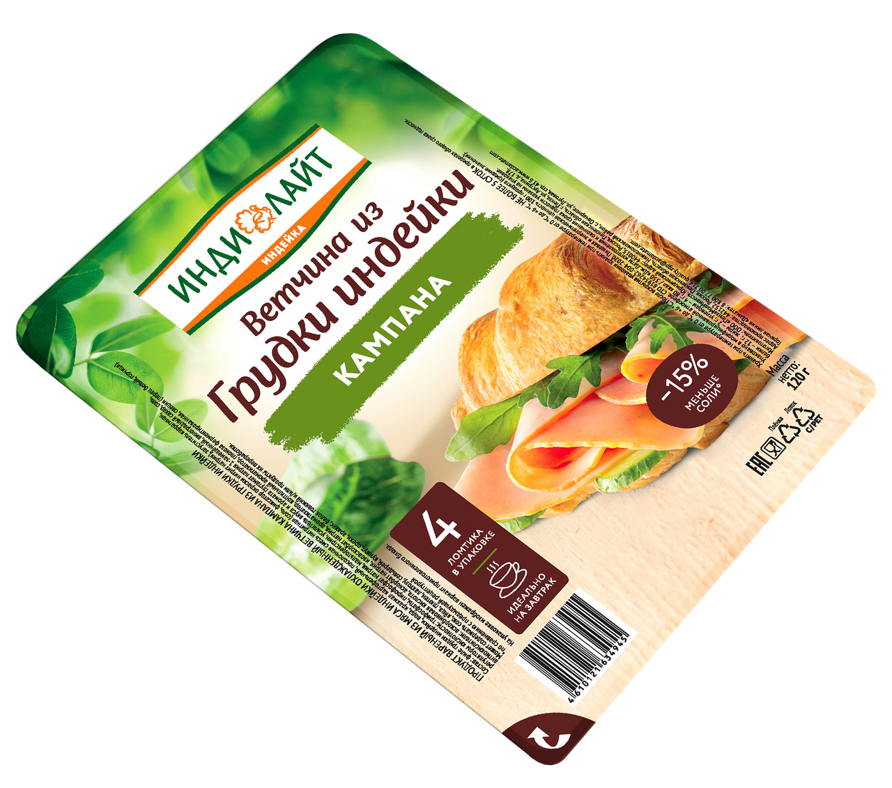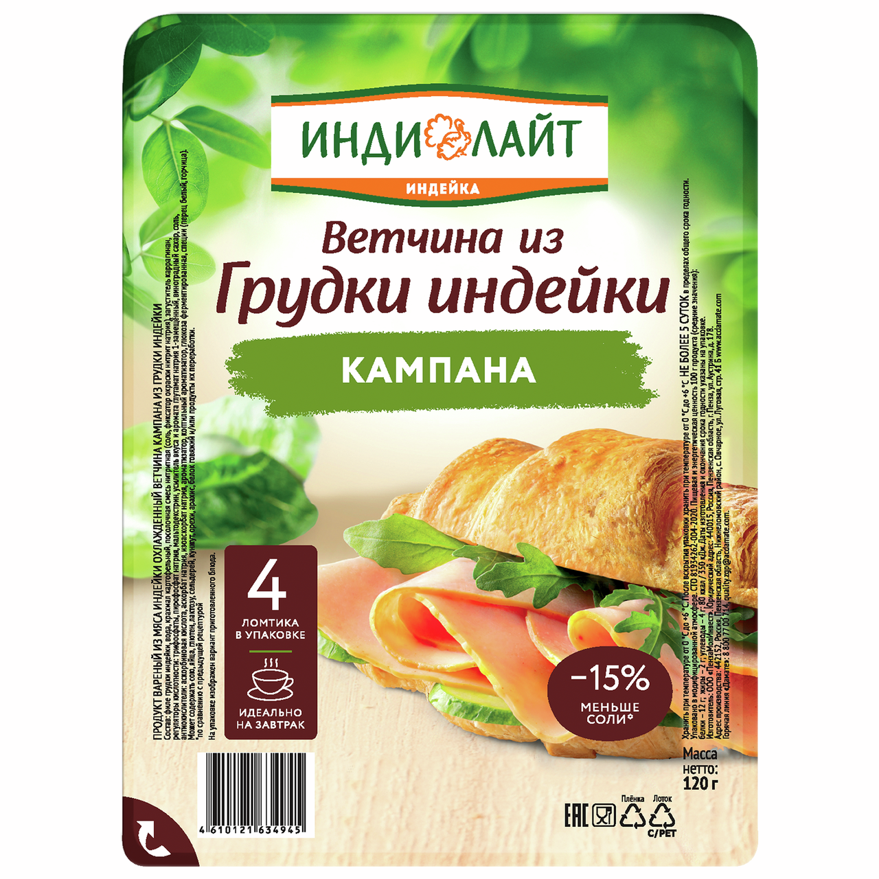 Ветчина Индилайт Кампана из грудки индейки нарезка, 120г