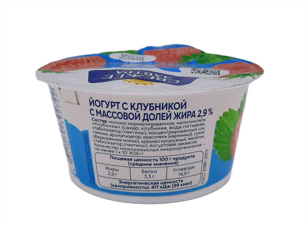 Это натуральный продукт, изготовленный по ГОСТ из нормализованного молока, с добавлением клубники и закваски, не содержит в составе Е компонентов. Йогурт обладает насыщенным ягодным вкусом и ароматом, с кусочками ягод внутри. Йогурт идеален для употребления в течение дня, калорийность продукта менее 100 кКал в 100 г, при этом жирность составляет 2.9%. Йогурт Свежее Завтра – это отличное дополнение к завтраку или яркий перекус в любое время, а полезные молочнокислые бактерии подарят ощущение лёгкости.