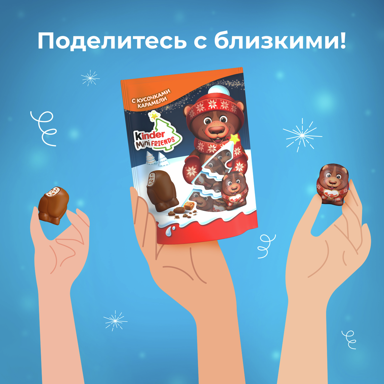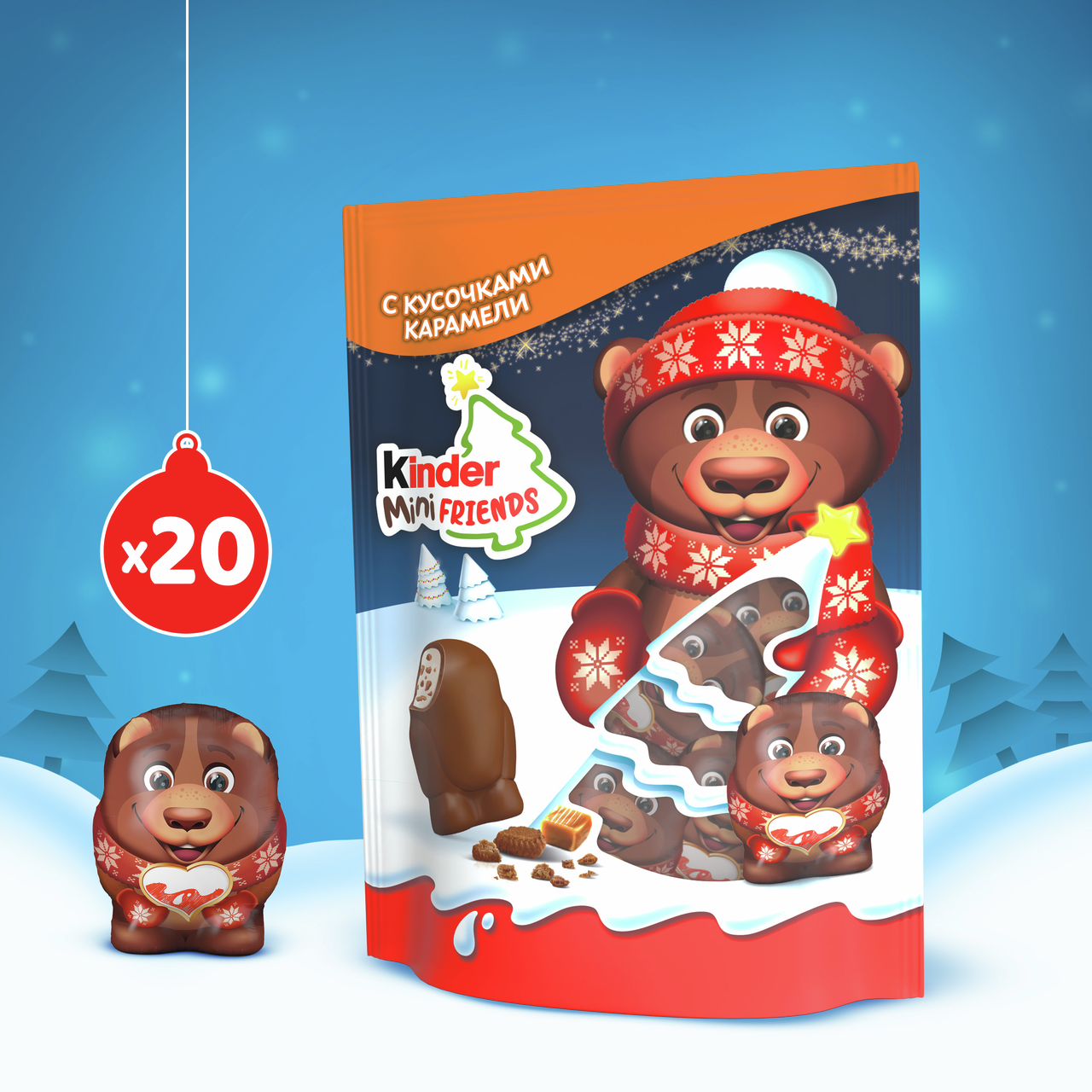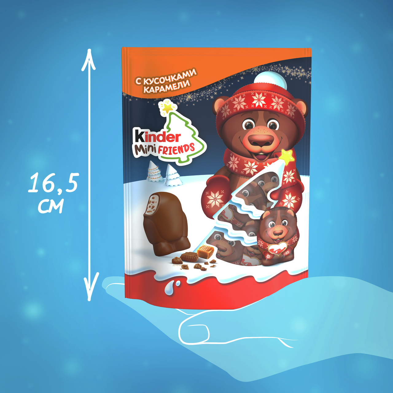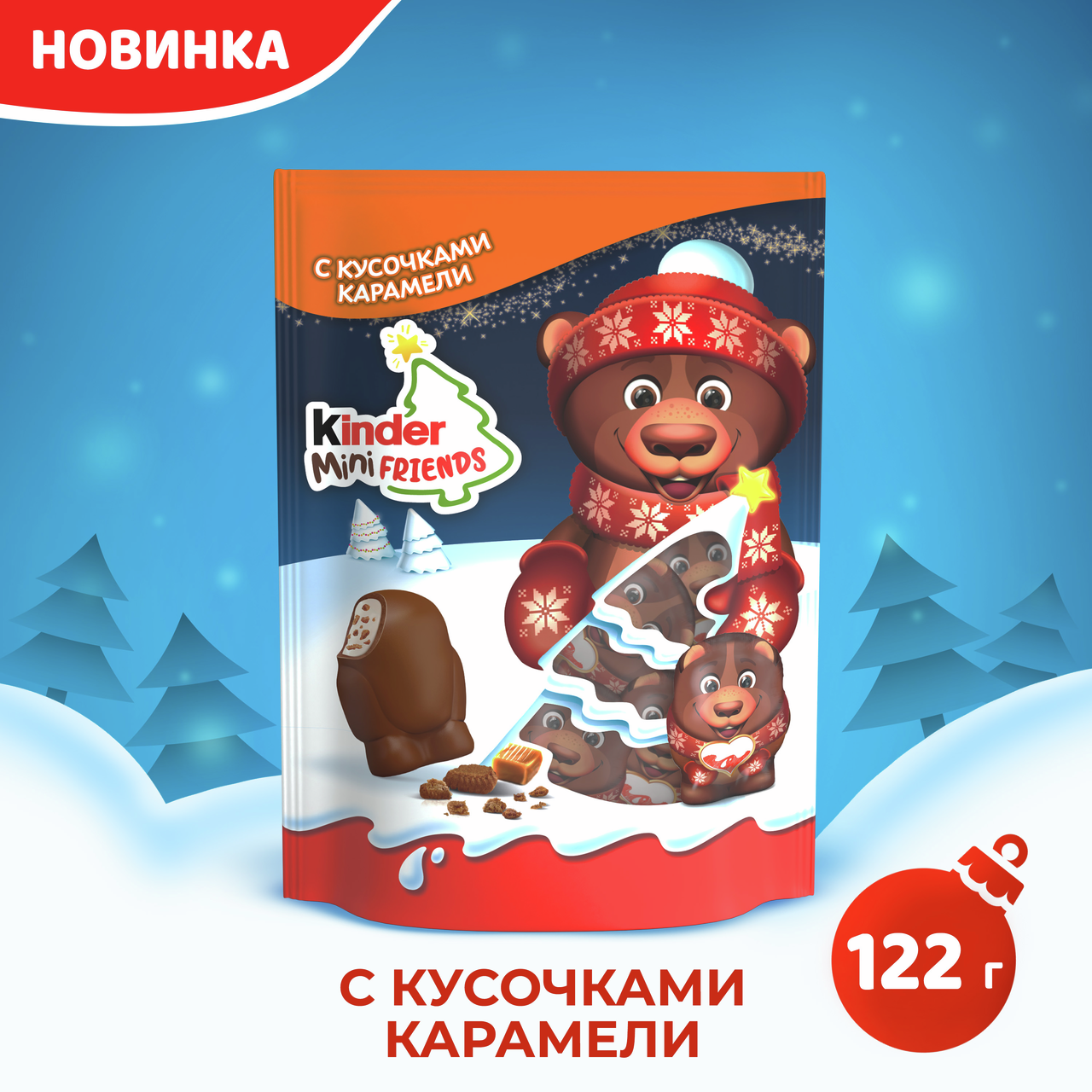 Любимый вкус шоколада Kinder теперь в мини-формате. Идеальное лакомство в виде новогодних героев, которым можно насладиться в моменты веселья, а ещё лучше поделиться с друзьями. Фигурные шоколадные угощения с молочной начинкой и хрустящими кусочками печенья. Они выполнены в форме новогодних персонажей, что делает их особенно привлекательными для детей. Бархатистый молочный шоколад гармонично сочетается с нежной начинкой, создавая сбалансированный вкус. Яркая упаковка с зимними мотивами подчёркивает праздничную атмосферу. Эти конфеты подойдут для небольшого угощения, дополнения к подарку или дружеского чаепития. Продукция итальянского бренда Kinder представлена более чем в 100 странах и отличается строгим контролем качества на каждом этапе производства. Компания использует высококачественные ингредиенты и внедряет современные технологии, чтобы соответствовать ожиданиям.