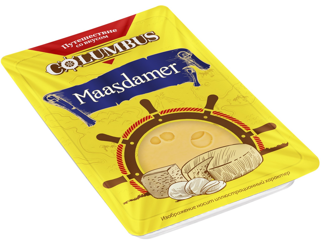 Сыр Columbus Маасдамер полутвердый нарезка 45%, 125г