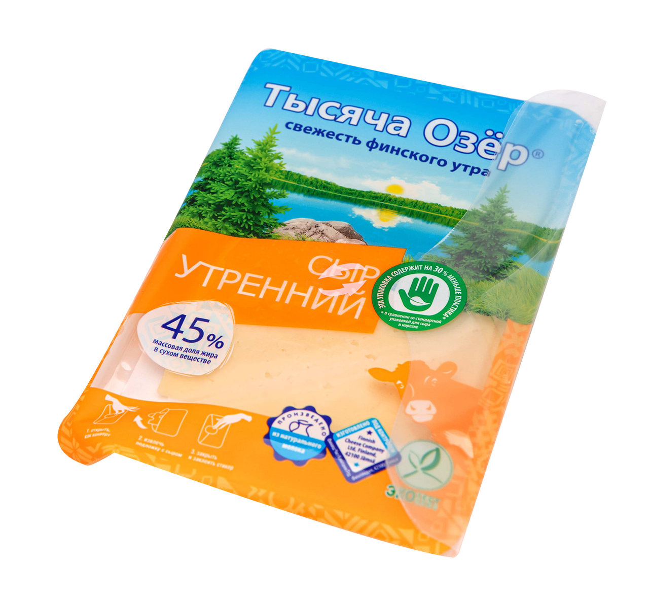 Сыр Тысяча Озер Утренний полутвердый нарезка 45%, 125г