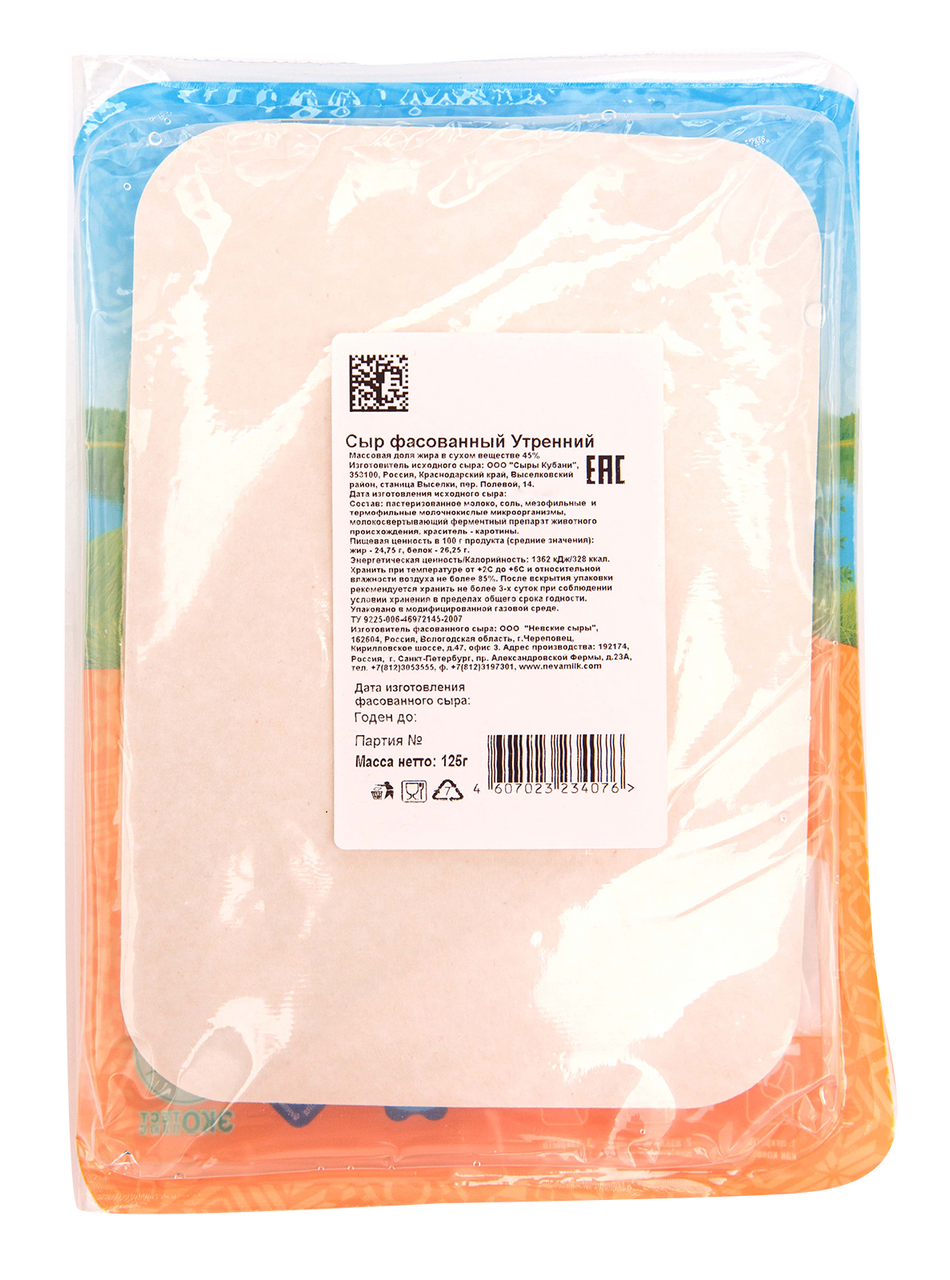 Сыр утренний Тысяча Озер нарезка 45%, 125г БЗМЖ (без заменителя молочного жира) – это полезный и питательный продукт, который любит практически каждый. Сыр находится в вакуумной упаковке, что позволяет продлить срок хранения. Будет уместен не только в повседневном рационе, но и на праздничном столе. Является продуктом высокого качества. Производится по традиционной технологии. Каждый этап изготовления тщательно контролируется. Выделяется твердой структурой и тонким сливочным ароматом. Применяется в кулинарии для приготовления тостов или бутербродов, добавления в соусы, горячие блюда или салаты. Натертым сыром можно посыпать мясо или рыбу перед запеканием, чтобы получить аппетитную корочку.