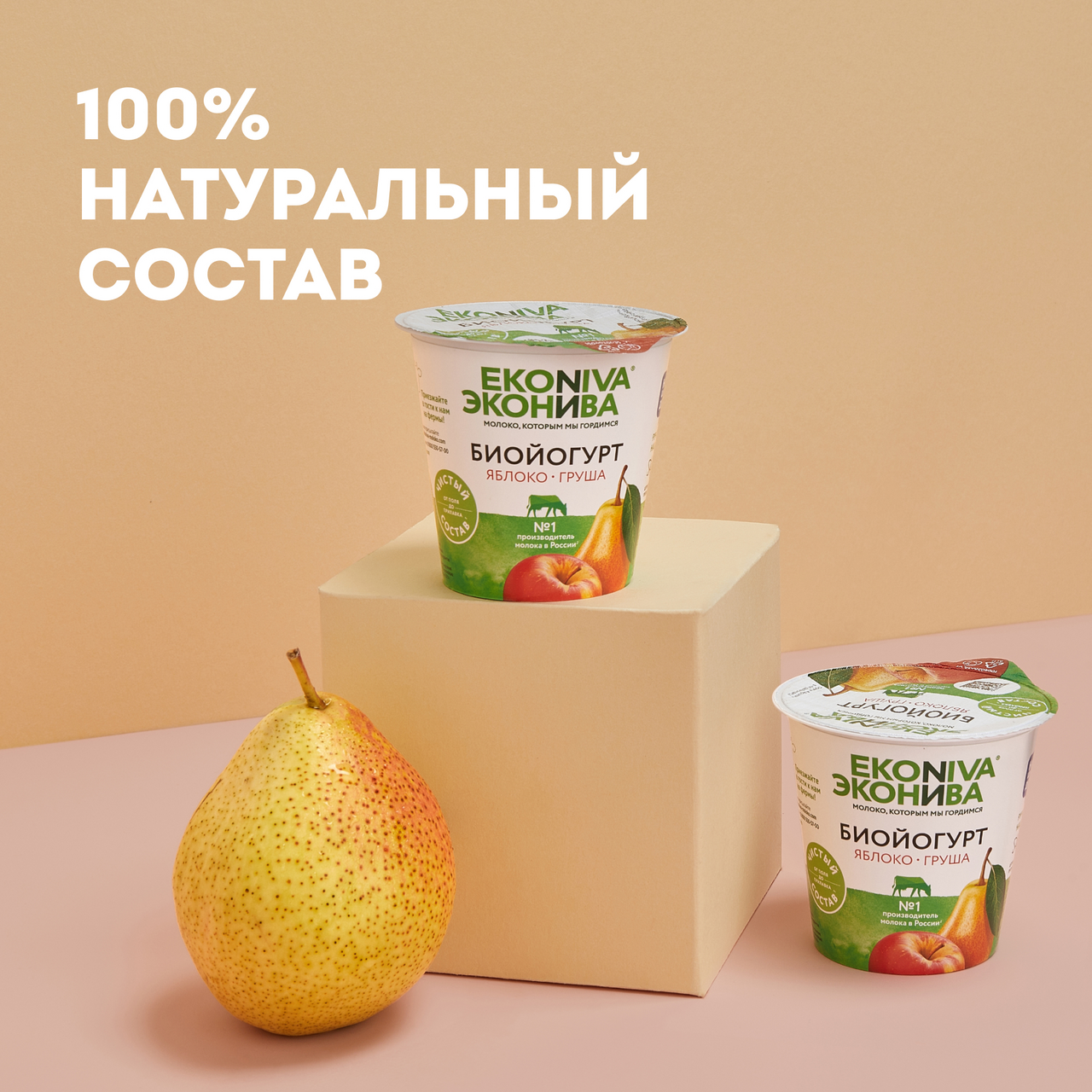 Биойогурт Эконива с яблоком и грушей 2.8%, 125г