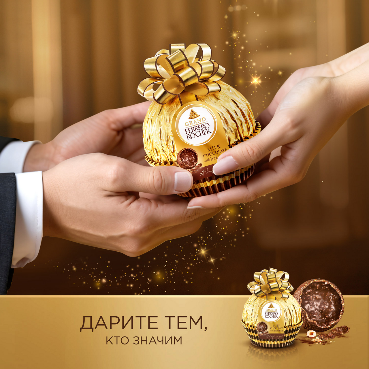 Набор конфет Grand Ferrero Rocher хрустящие из молочного шоколада, 125г