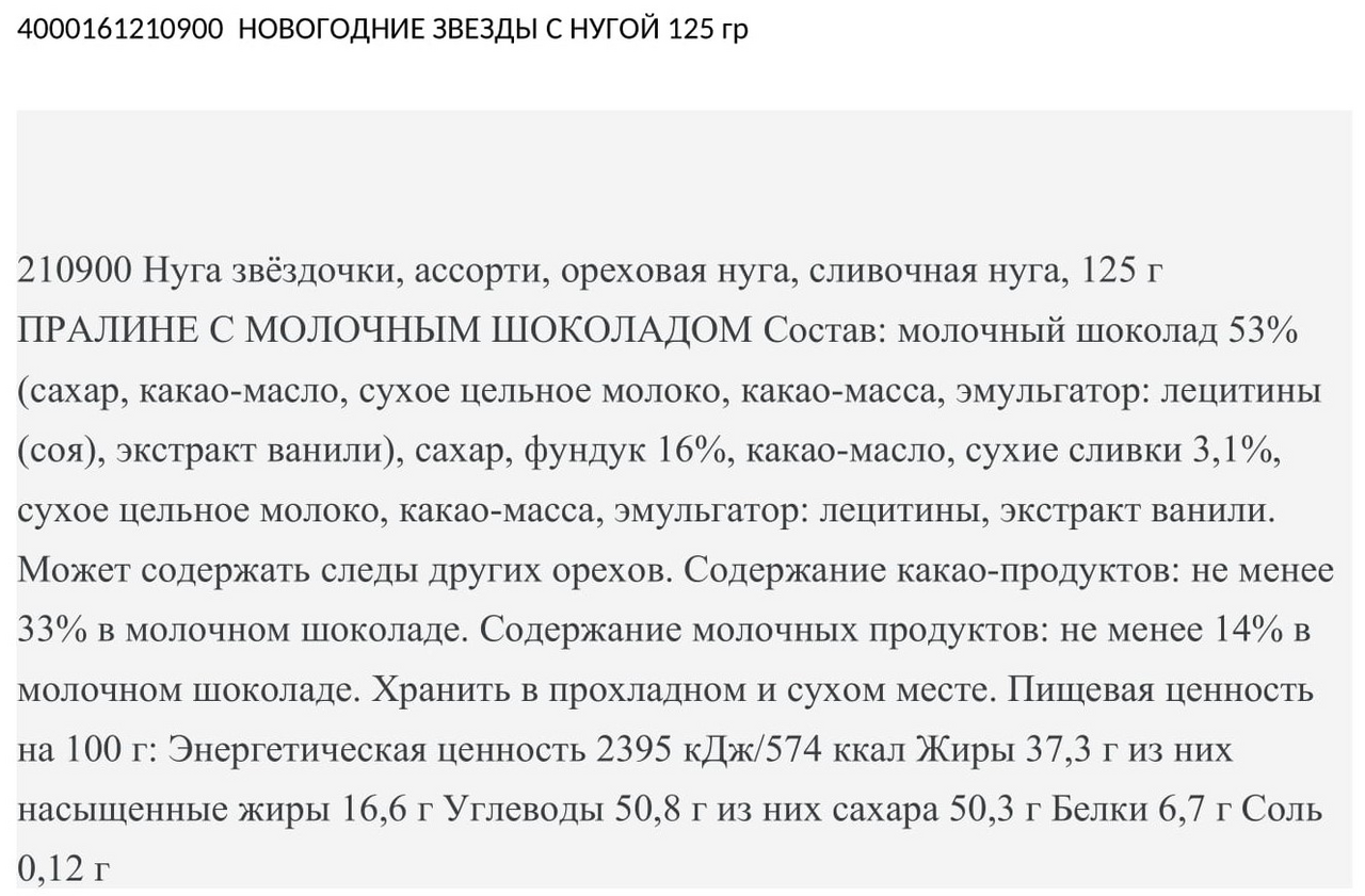 Молочный шоколад сахар, какао-масло, цельное сухое молоко, какао-масса, эмульгатор: лецитины сои, экстракт ванили, сахар, фундук, какао-масло, сухие сливки, цельное сухое молоко, какао-масса, эмульгатор: лецитины, экстракт ванили.