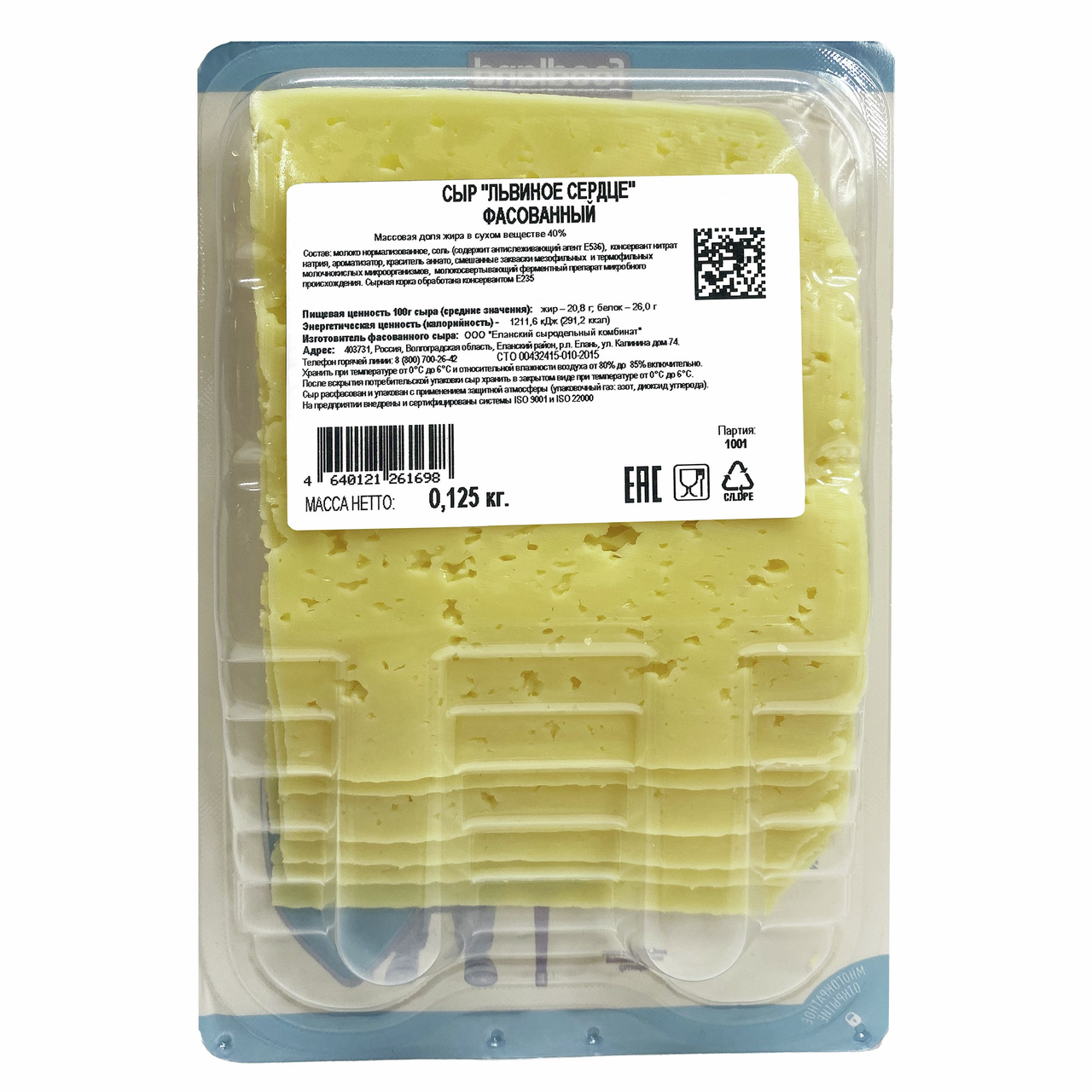 Сыр Радость вкуса Львиное сердце нарезка 40%, 125г