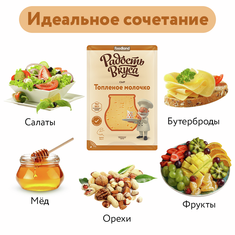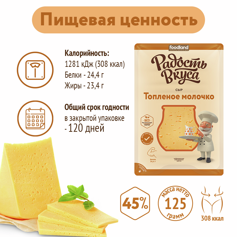 Сыр Радость вкуса Топленое молочко полутвердый нарезка 45%, 125г