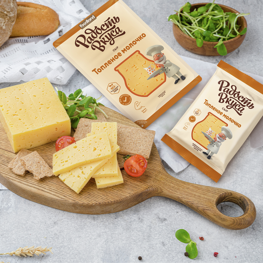 Отличается нежным вкусом топленого молока, обладает насыщенным ароматом, имеет мелкий резной глазок. Идеально сочетается с фруктами, ягодами, орехами и медом. Подходит для сбалансированного питания на каждый день. Любимые хлебцы или свежий багет в сочетании с сыром Топленое молочко – вкусный и одновременно простой способ утолить голод. Прекрасно подходит как для утреннего бутерброда, так и для праздничной нарезки. Не содержит растительных жиров. Продукт уже нарезан аккуратными ломтиками и полностью готов к подаче на стол. Удобно брать с собой на пикник, на работу или в дорогу, чтобы иметь возможность перекусить с пользой для организма.