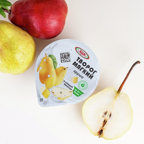 Мягкий творог с натуральным грушевым наполнителем. Обладает однородной кремовой консистенцией и приятным кисломолочным вкусом, дополненным сладковатыми фруктовыми нотками. Прекрасно подходит для питательных завтраков и перекусов.
