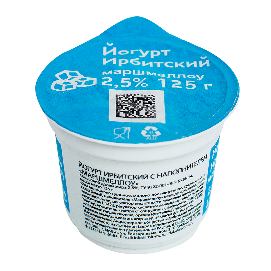 Йогурт Ирбитский молочный завод маршмеллоу 2.5%, 125г