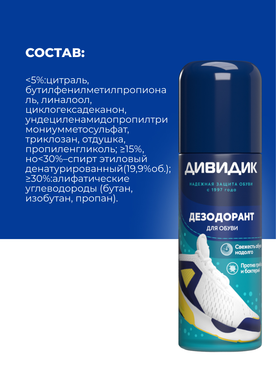 Дезодорант для обуви Дивидик аэрозоль, 125мл