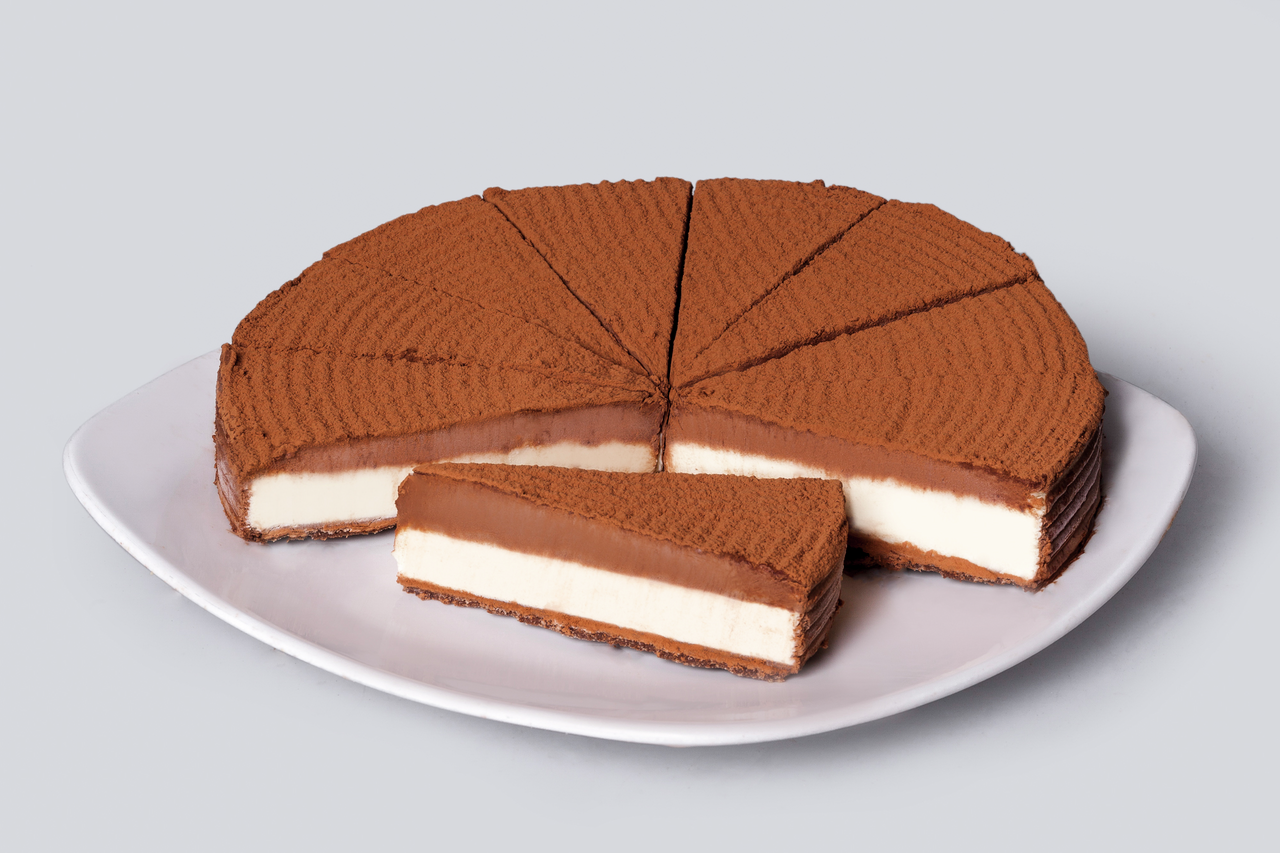 Сделан из настоящего творожного сливочного сыра, сливок и шоколада. Для удобство он предварительно разрезан на 12 порций, так что вы можете доставать отдельные куски по мере необходимости. Классическое сливочное творожное суфле на основе коржа из шоколадного песочного печенья и нежной сырной шоколадной массы.