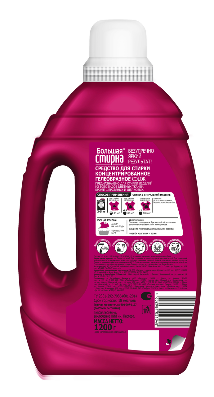 Гель-концентрат Большая стирка яркость цвета, 1.2кг