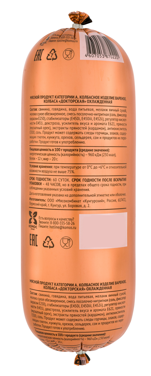 Колбаса Кунгурский МК Докторская вареная, ~1.2кг