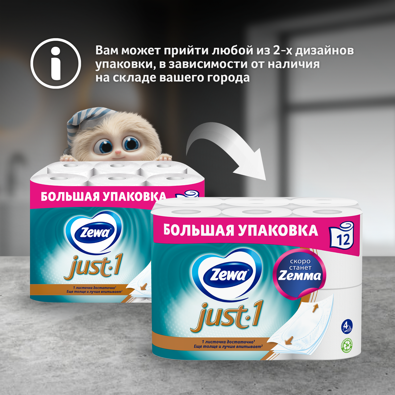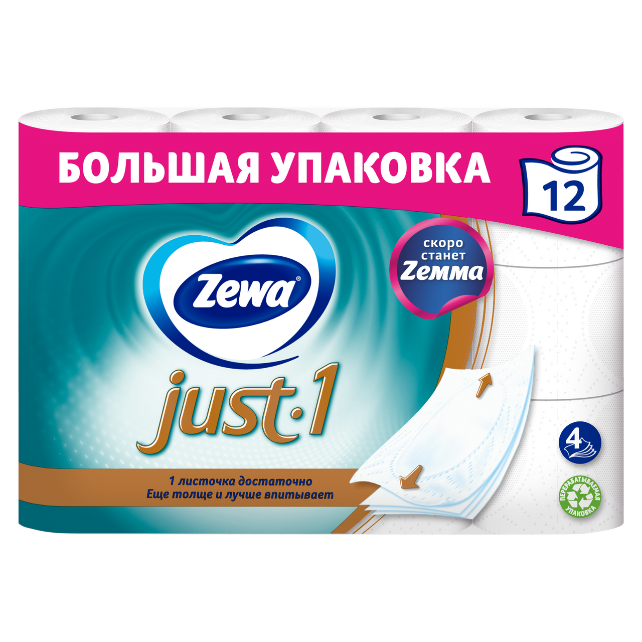 Туалетная бумага Zewa Just 1 4-слойная, 12 рулонов