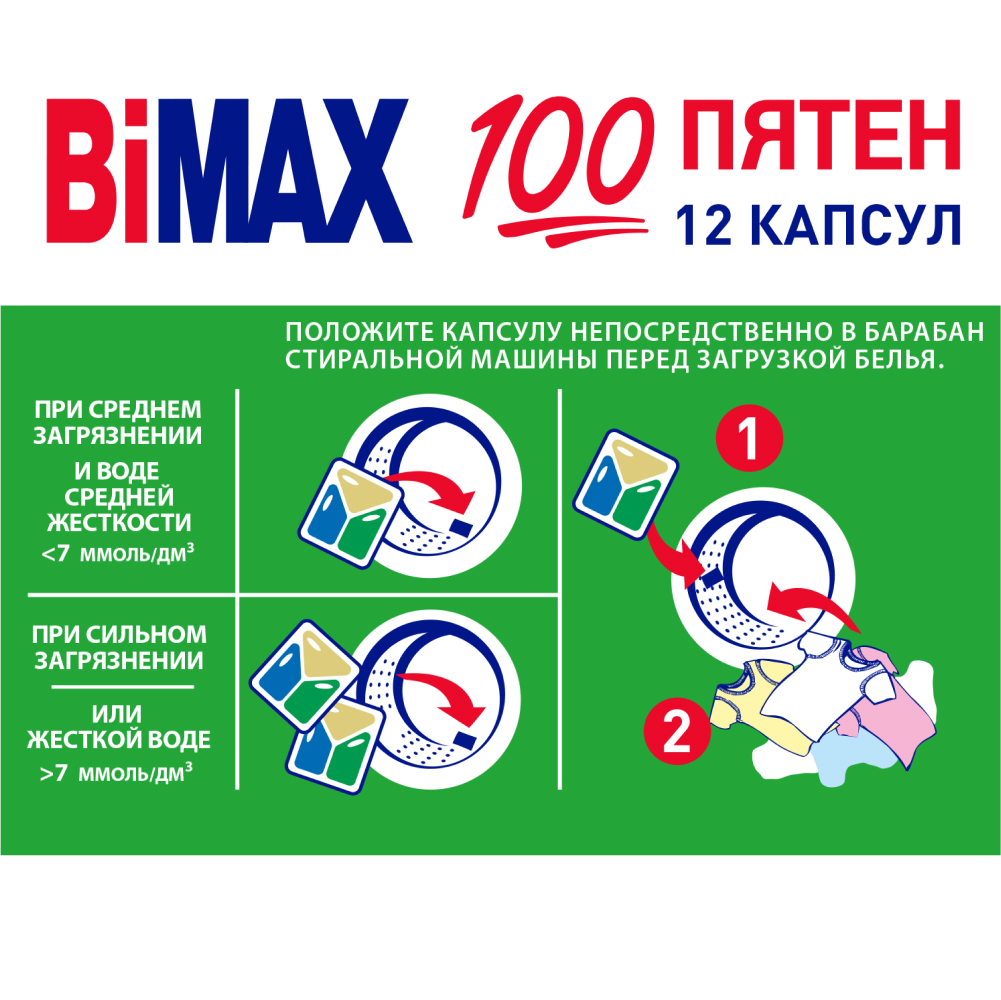 Капсулы для стирки Bimax 100 пятен, 12шт