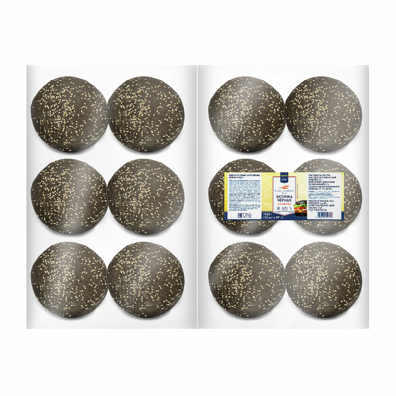 METRO Chef Булочка для гамбургера черная с кунжутом замороженная 125мм (89г x 12шт), 1.068кг