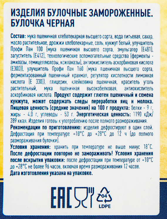 Позволит вам приготовить настоящий гамбургер по вашему индивидуальному вкусу и рецепту. Булочки готовы к употреблению после полного размораживания. Рекомендации по приготовлению: изделия дефростируют в один слой температуре +10С до +28С до 12 часов (до полного размораживания булочки). Выпекается с добавлением натурального растительного угля, что позволяет сохранить хлебный вкус булочки.