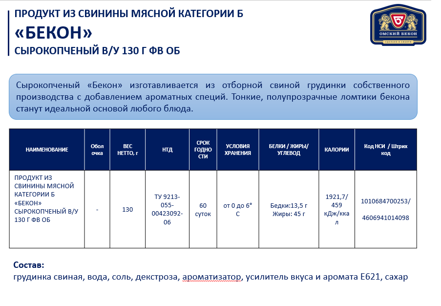 Грудинка свиная, вода, соль, декстроза, ароматизатор, усилитель вкуса и аромата е621, сахар.