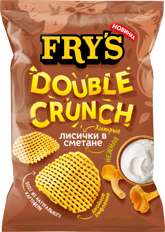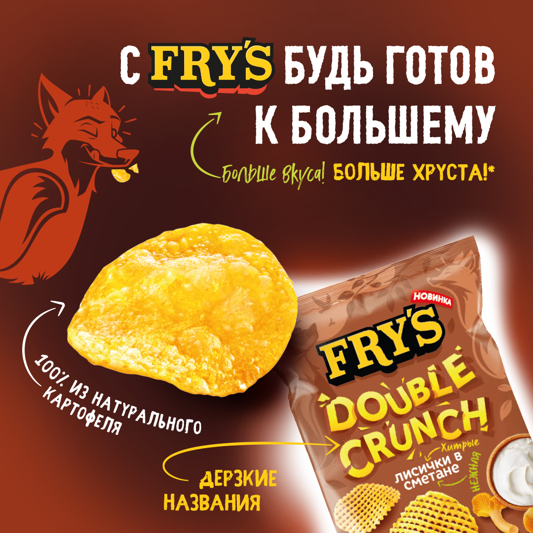 Возьми пачку Fry’s, потряси – слышишь потрясный хруст? Это рвутся наружу невероятно вкусные и очень хррррустящие чипсы из отборного картофеля. Fry’s Нежная сметана и игривая зелень – чипсы с нежным сливочным вкусом и игривым ароматом зелени, которые оставят яркое послевкусие. Больше вкуса, больше хруста!