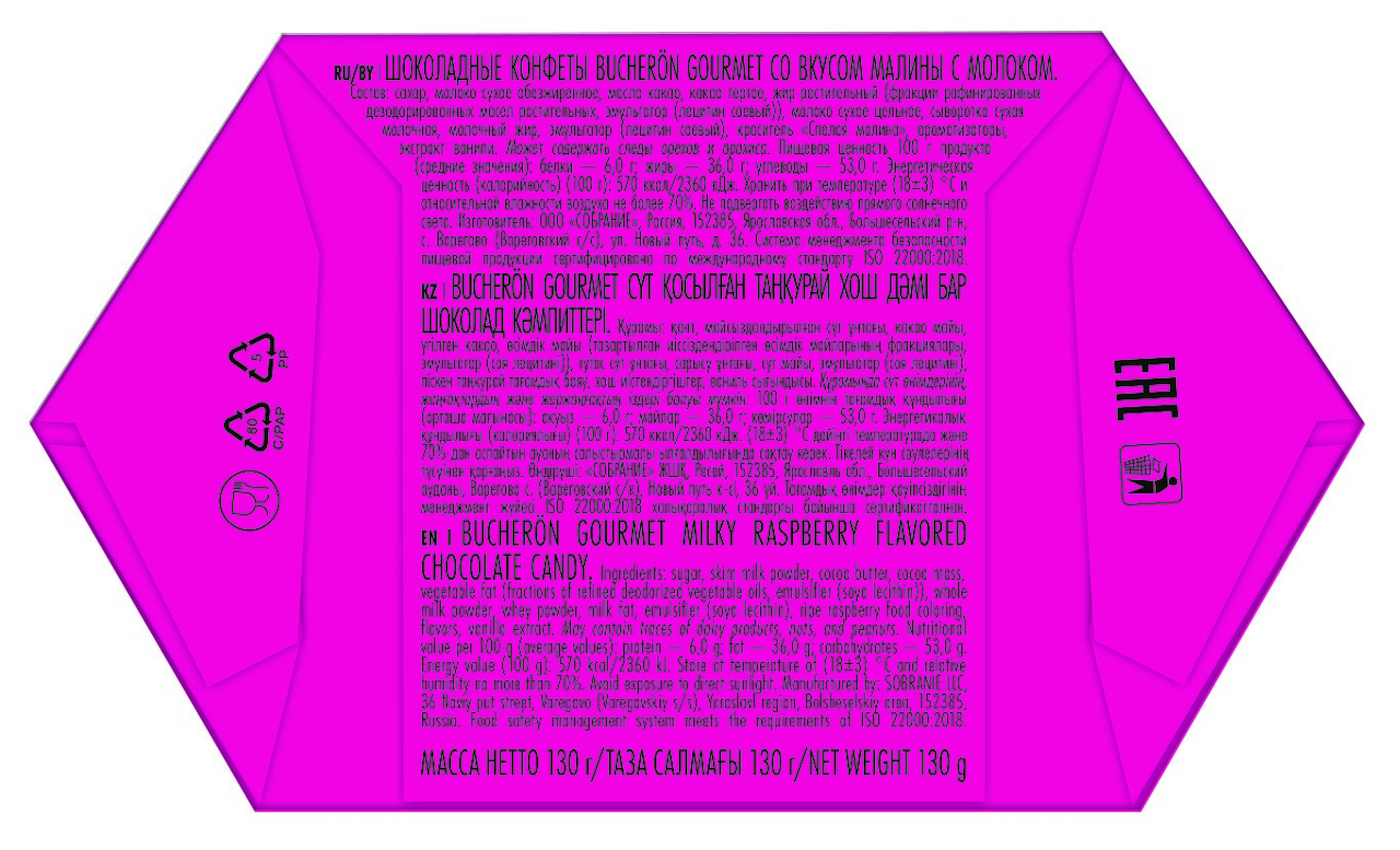 Конфеты Bucheron Gourmet шоколадные малина и молоко, 130г
