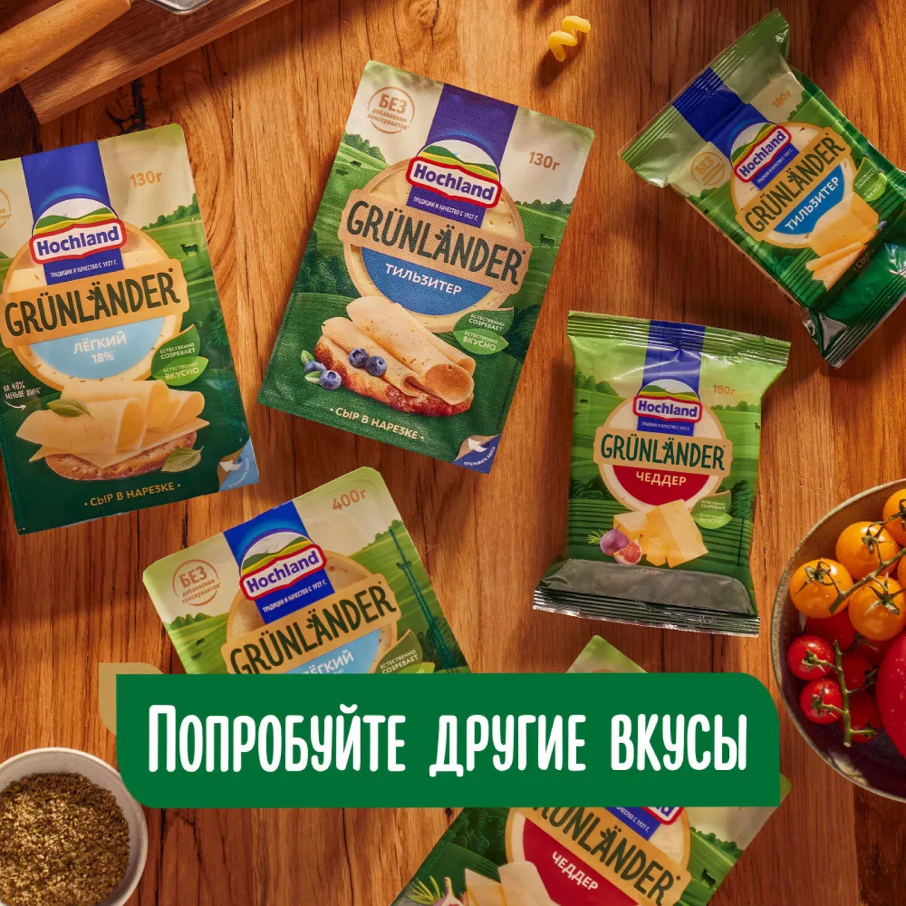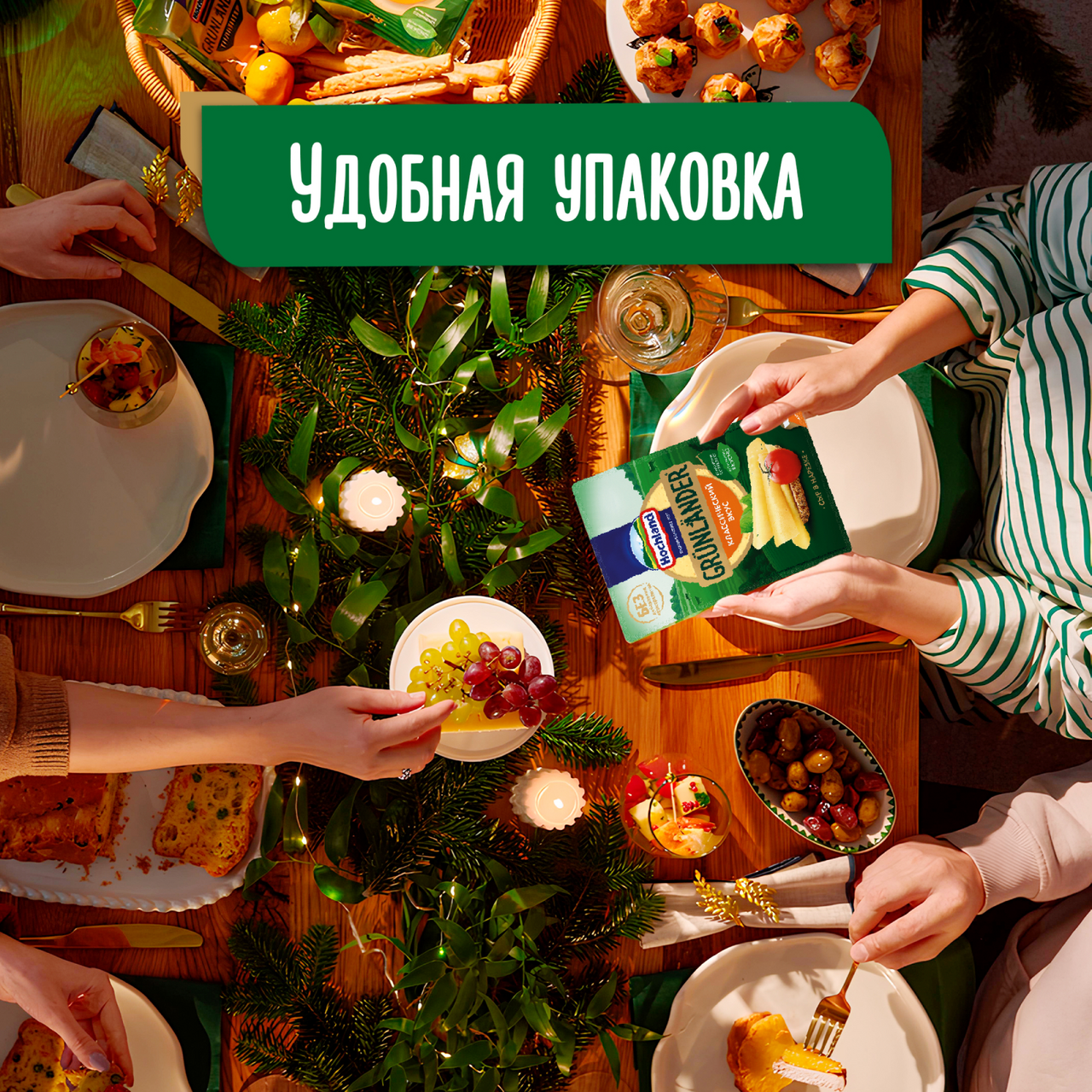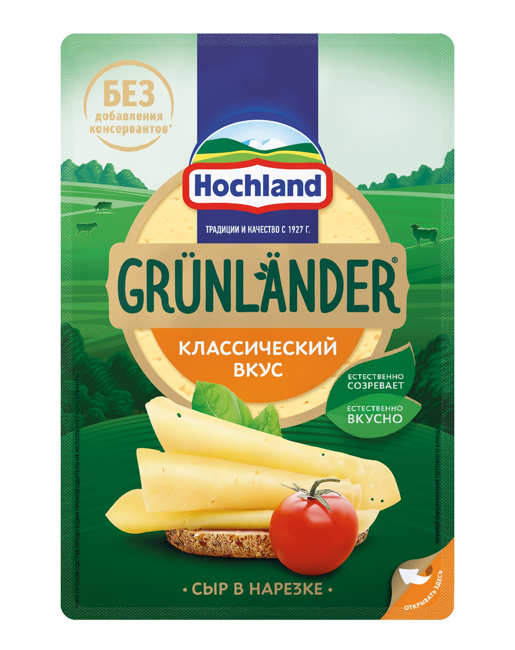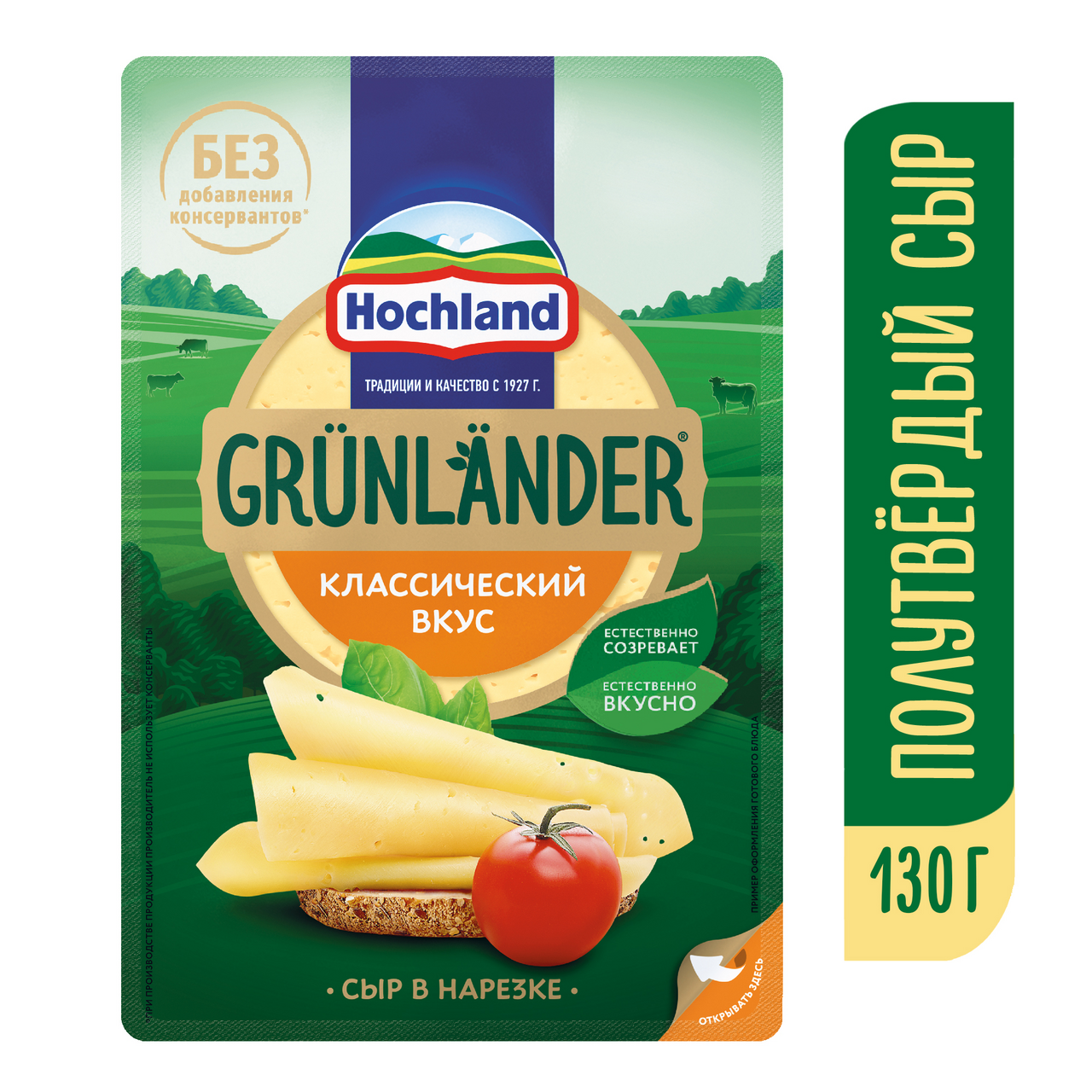 Сыр Hochland Грюнландер классический в нарезке 50%, 130г