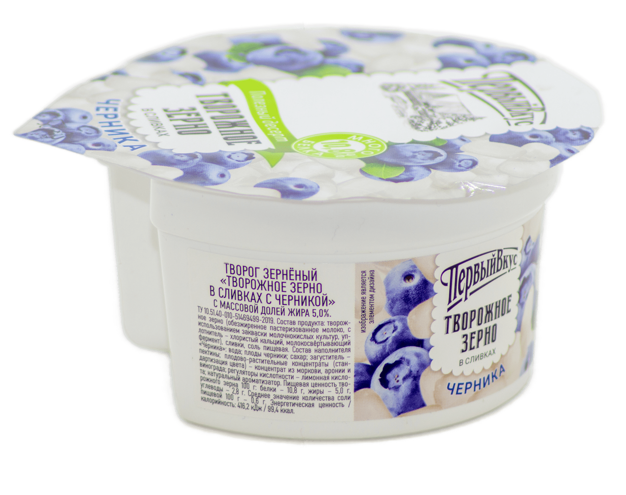 Творог зерненый Первый вкус в сливках черника, 130г