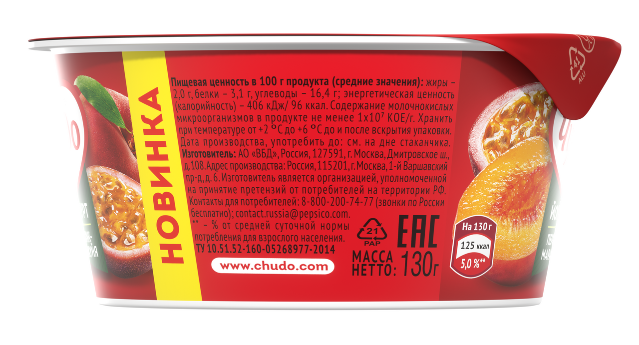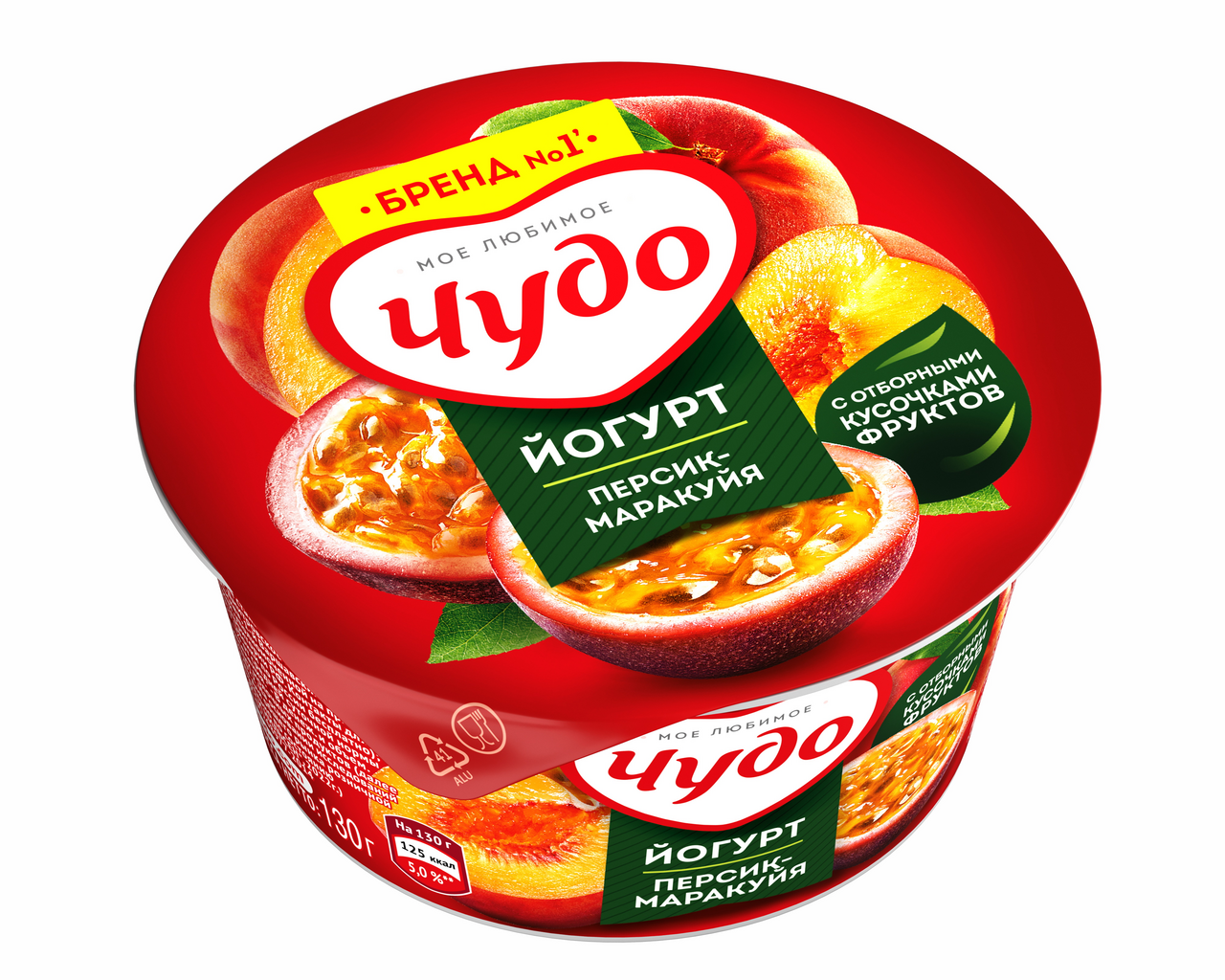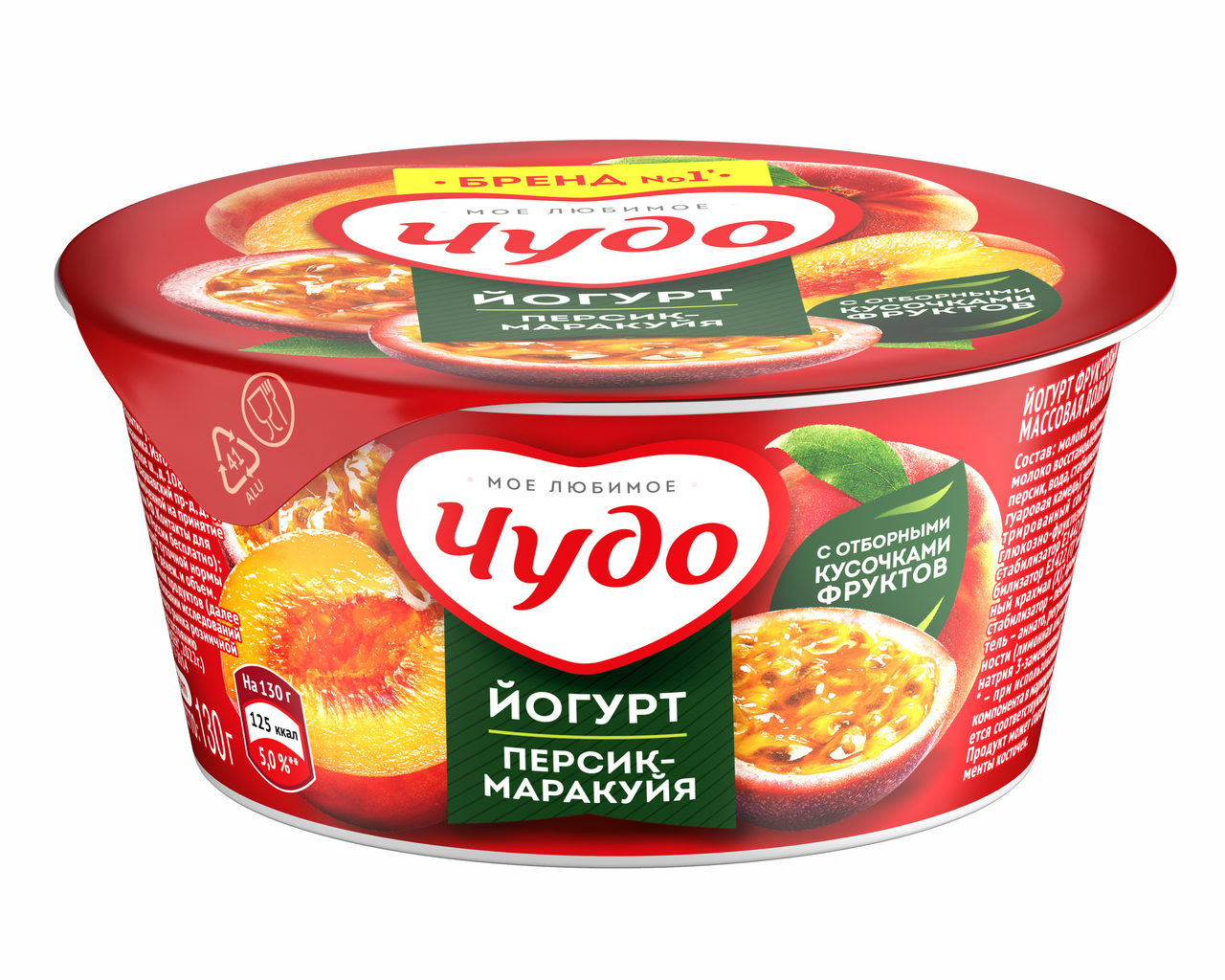 Йогурт фруктовый Чудо персик-маракуйя 2%, 130г