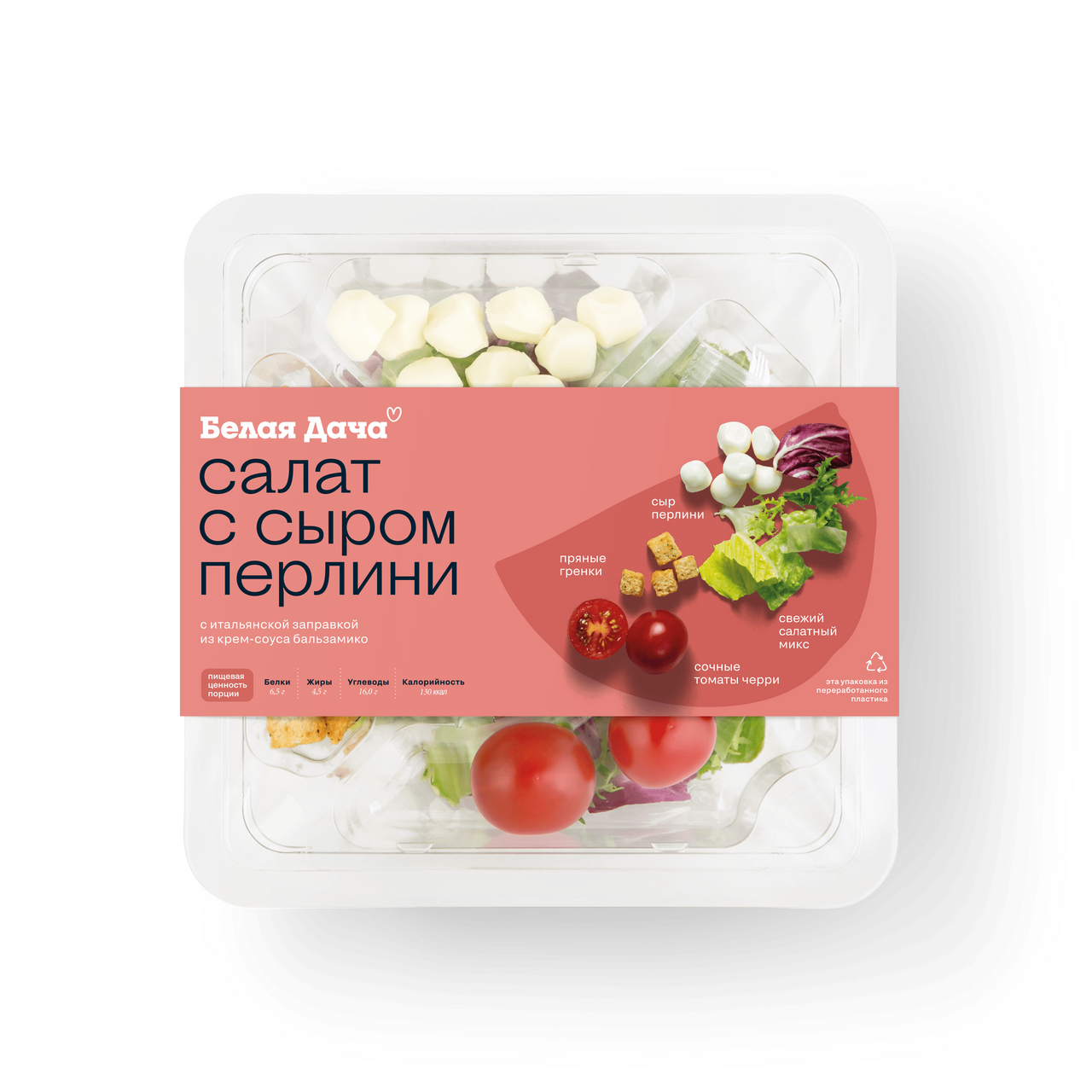 Салат с сыром перлини и Итальняской заправкой внутри - идеальный вариант для быстрого и лёгкого перекуса. Белая Дача представляет новую серию полноценных блюд — готовые салаты в удобных раздельных упаковках, разработанные бренд-шефом Белая Дача Филиппом Ковальчуком. Мы специально не стали смешивать продукты в упаковке и не добавили заправку в момент приготовления, чтобы гарантировать безопасность и удобный срок хранения салатных блюд. Каждый ингредиент наших салатов на 100% готов к столу: осталось только открыть, добавить фирменный соус и перемешать. Внутри салатного бокса есть биоразлагаемая вилка, а сама упаковка произведена из перерабатываемого пластика.